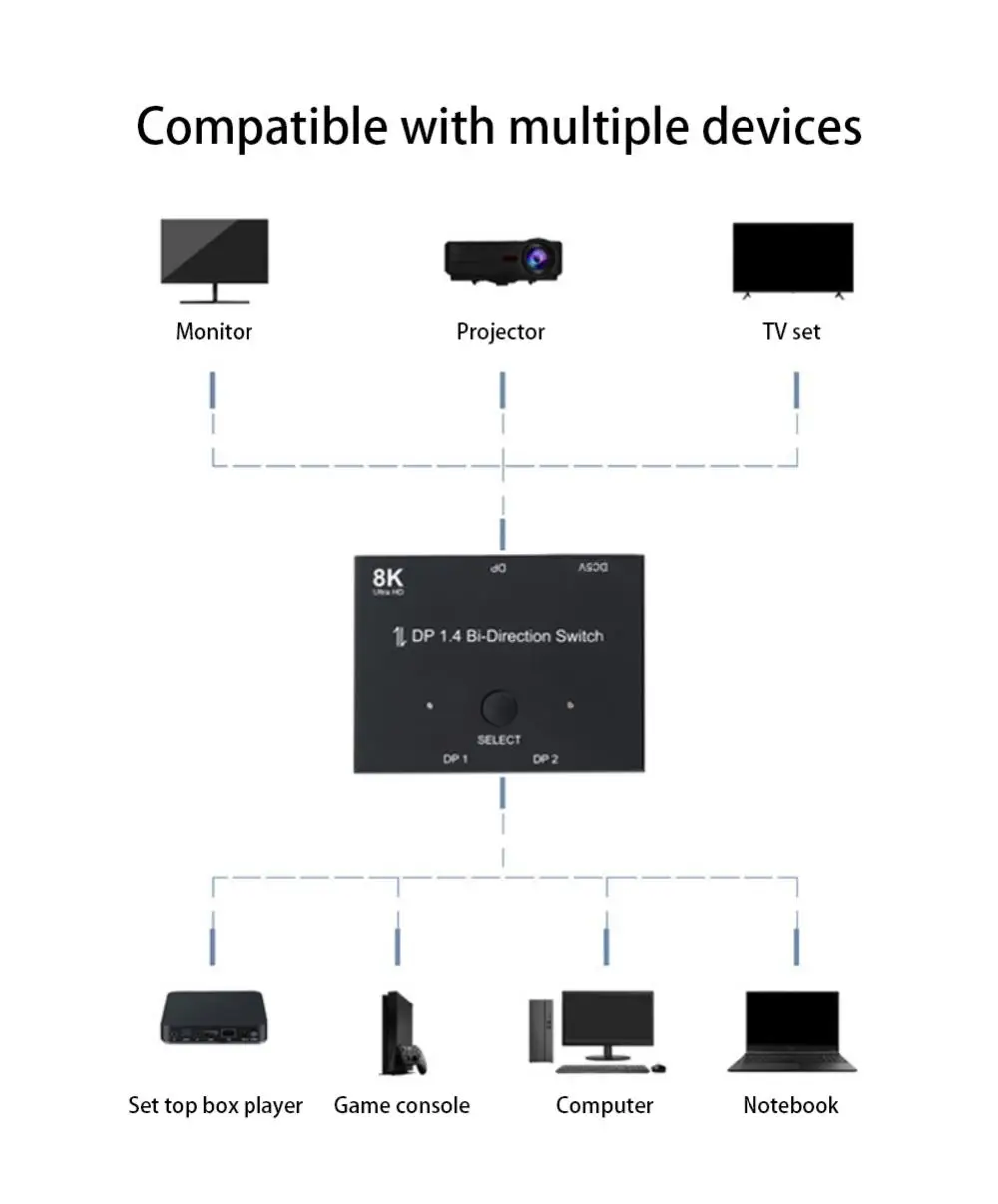 Адаптер DP 1,4 DisplayPort 8K Switch Bi-Direction 8K @ 30Hz 4K @ 120Hz Splitter конвертер ТВ проектор с несколькими источниками