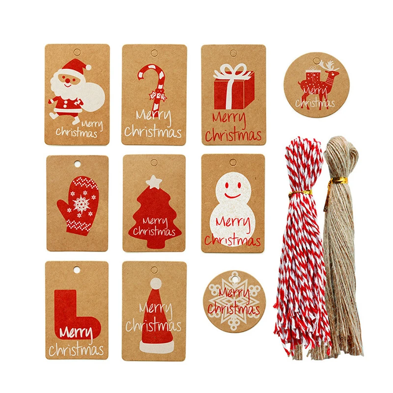 Упаковка: 100 шт. бумажная бирка (10 стилей бумажная бирка микс + 50 шт. льняная нитка + 50 шт. Красная белая Гирлянда