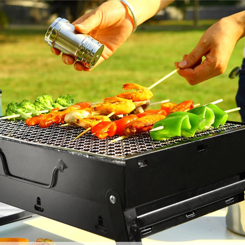 【Идеальные Инструменты для барбекю на открытом воздухе 】портативный гриль для барбекю на древесном угле-это чудо-подарок для кемпинга на открытом воздухе, альпинизма, пикников, вечеринок, трейлеров, пляжа, который удовлетворяет ваши желания к дымчатому, жареному вкусу и курительным мясам.