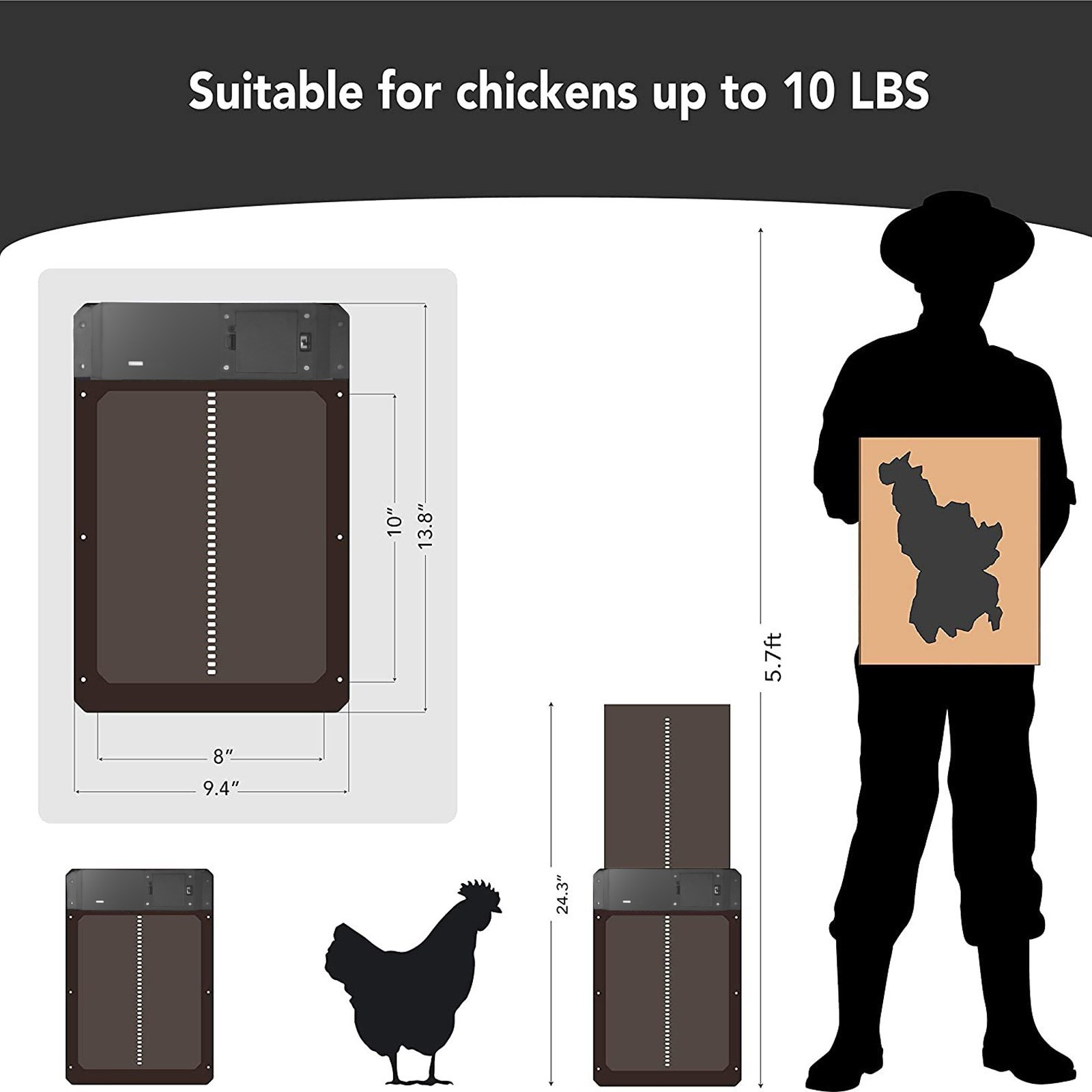 [Прост в использовании]-для установки двери требуется не более 10 минут (не требуется сложная проводка или проводка). Легко программировать кнопки. Он включается автоматически утром и автоматически выключается ночью. Вы можете установить таймер или использовать интегрированный (люкс) светильник-датчик.