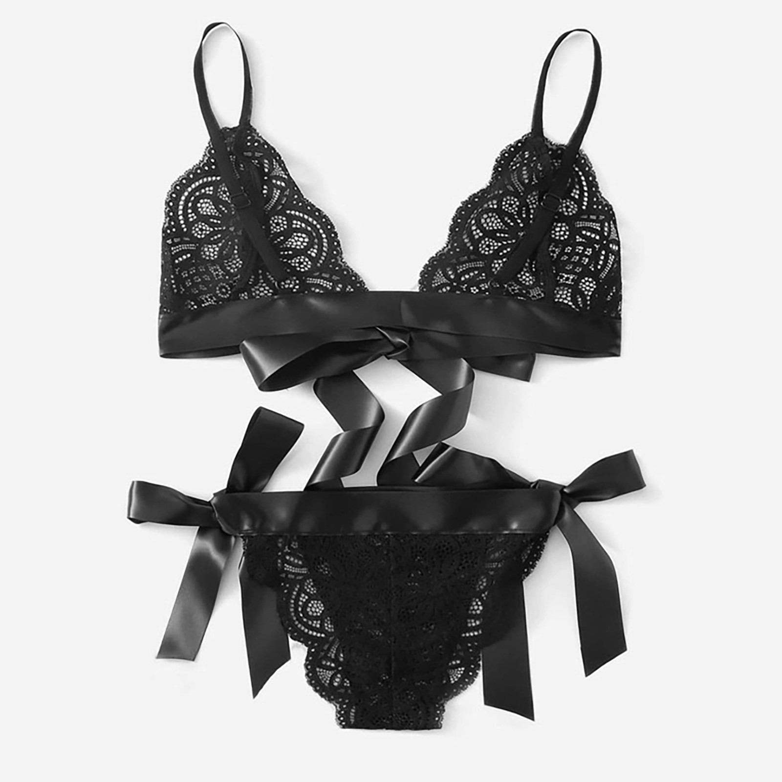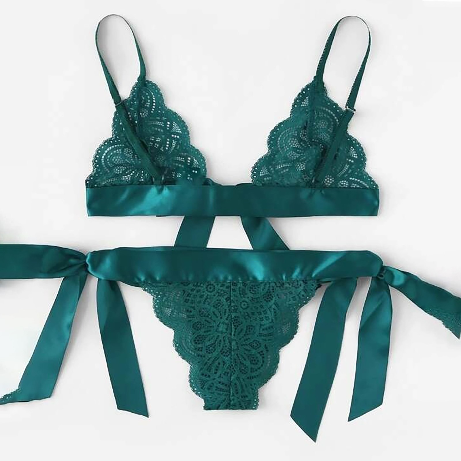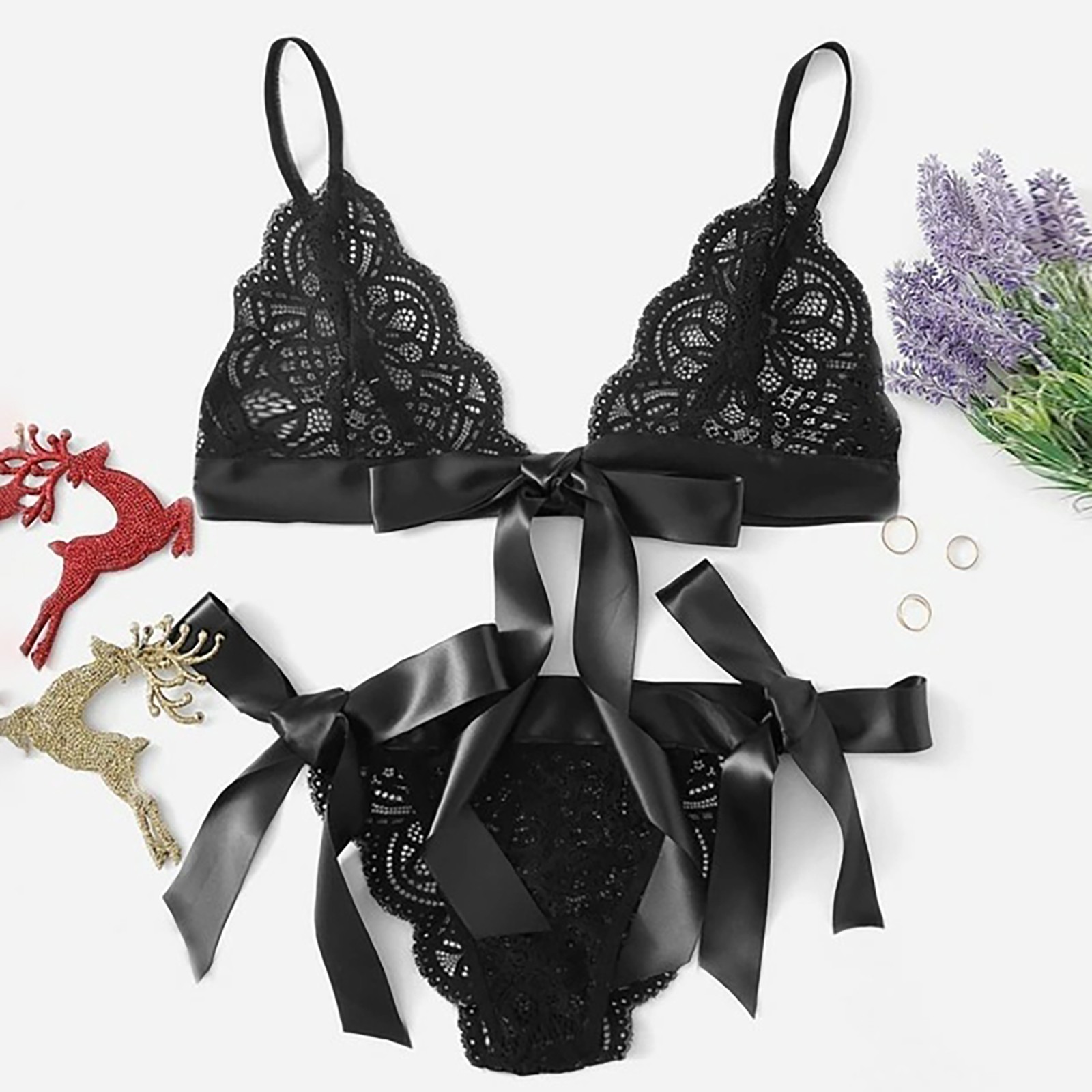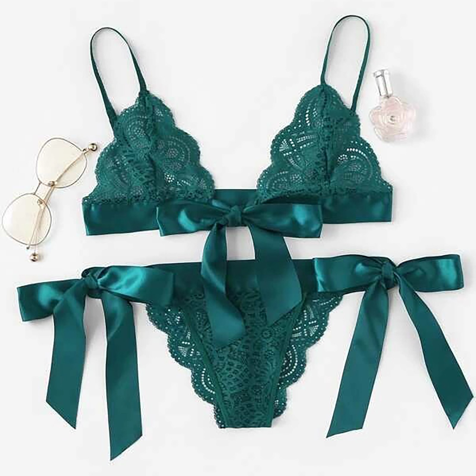 Женский модный сексуальный кружевной костюм из двух предметов, однотонный беспроводной бюстгальтер, сексуальное нижнее белье, трусики