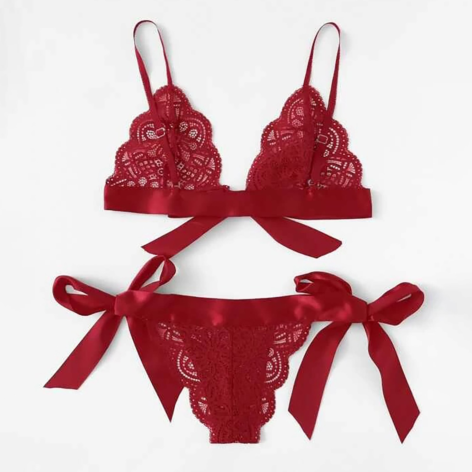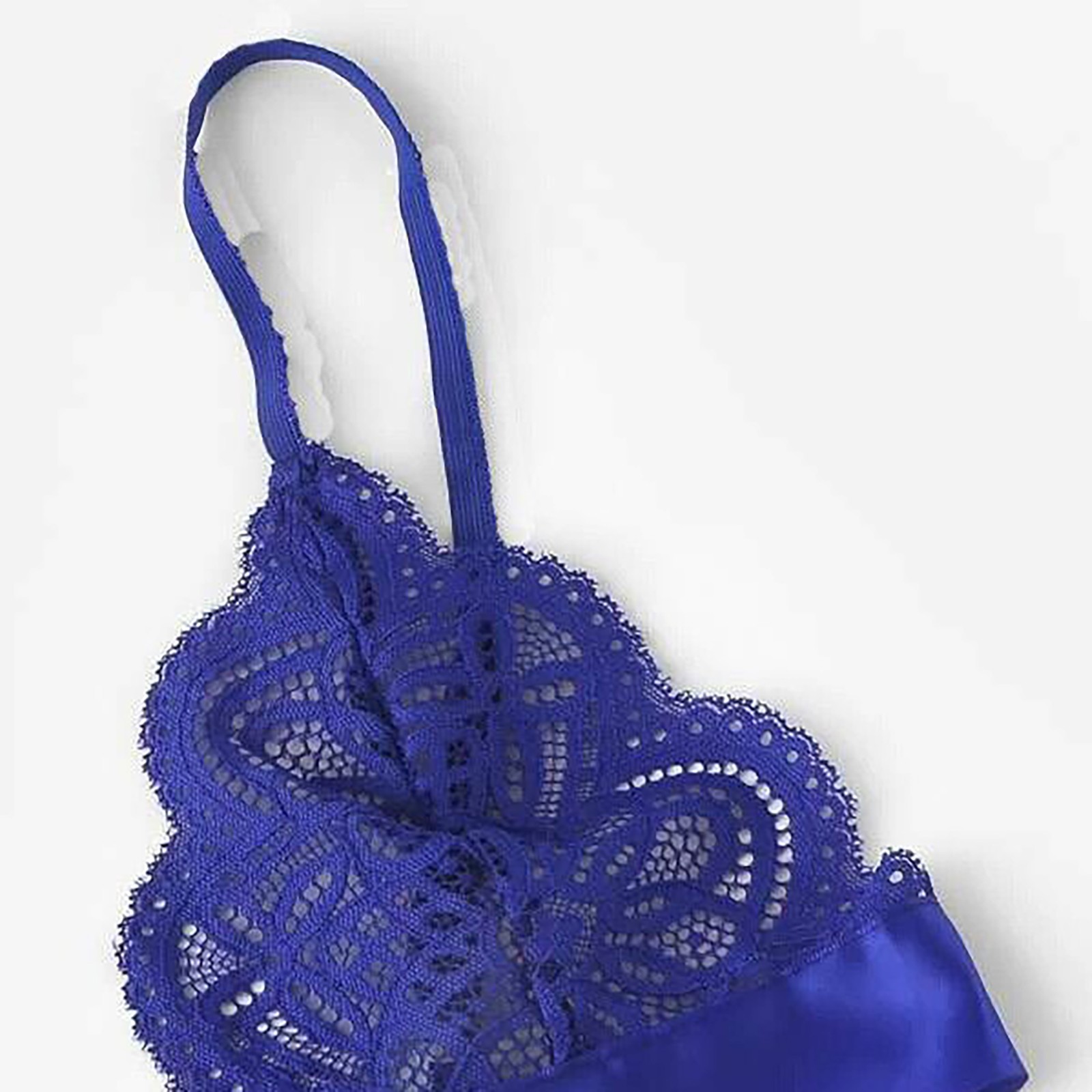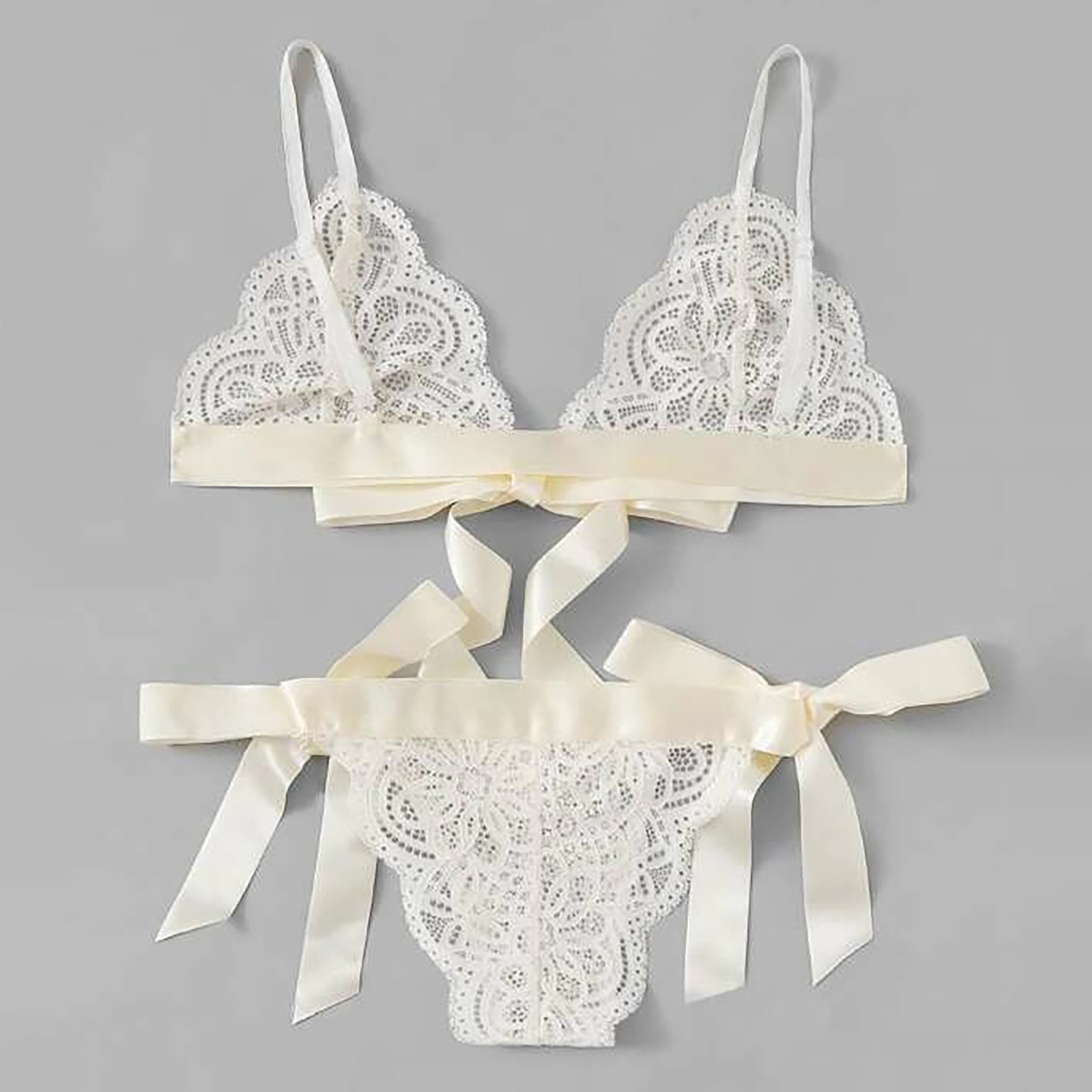 Женский модный сексуальный кружевной костюм из двух предметов, однотонный беспроводной бюстгальтер, сексуальное нижнее белье, трусики