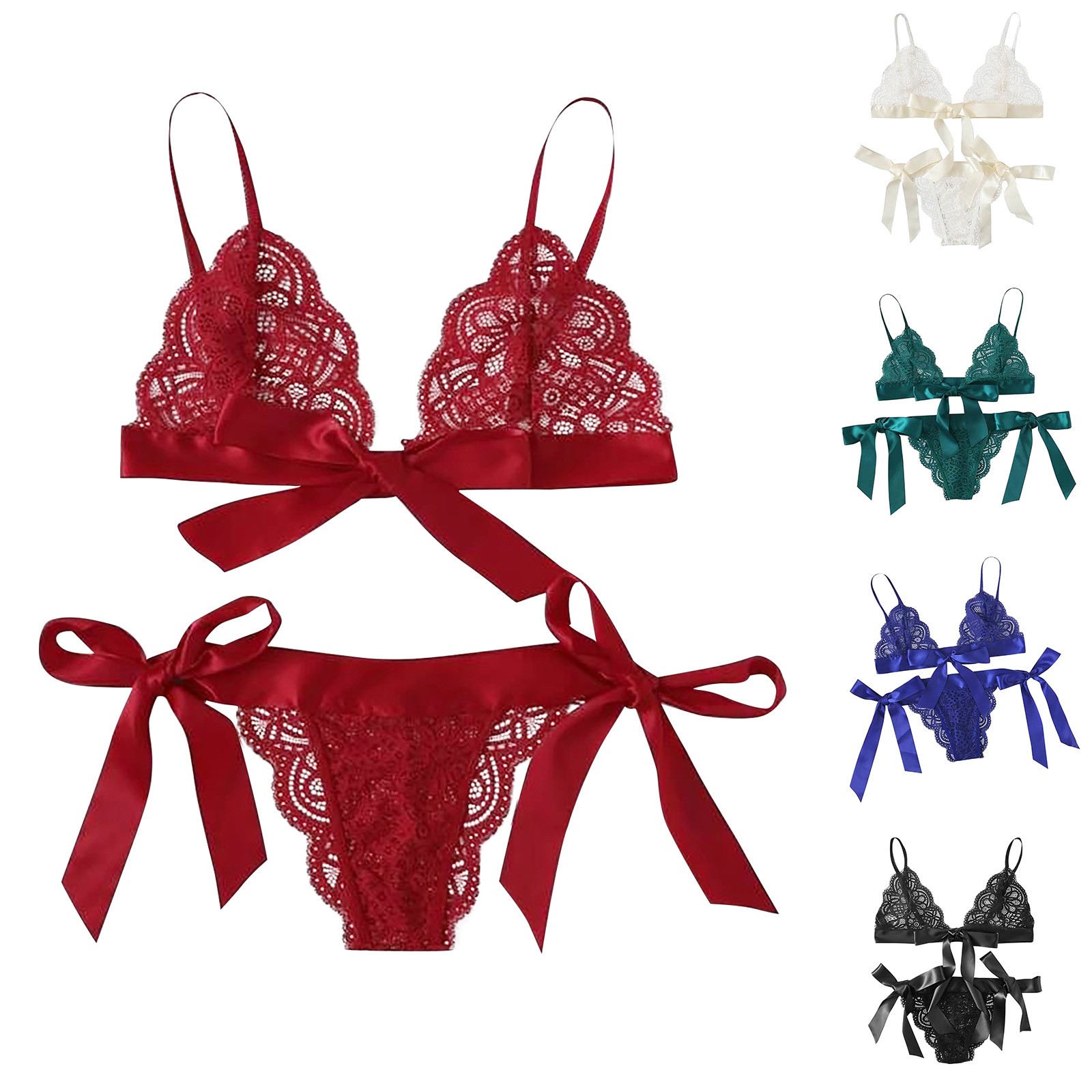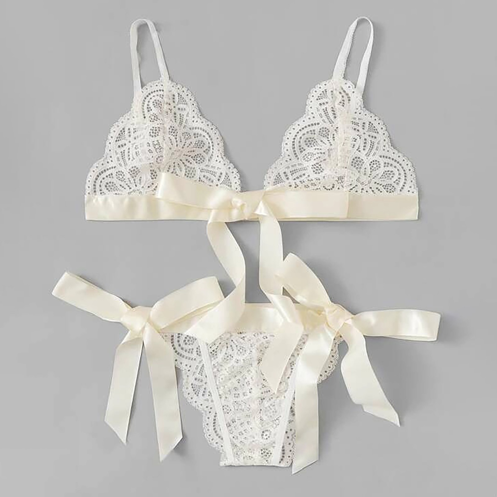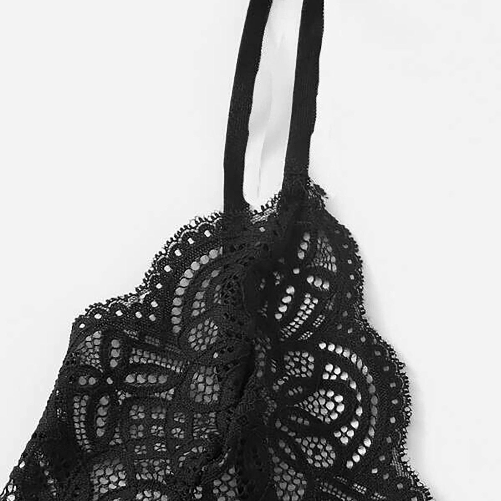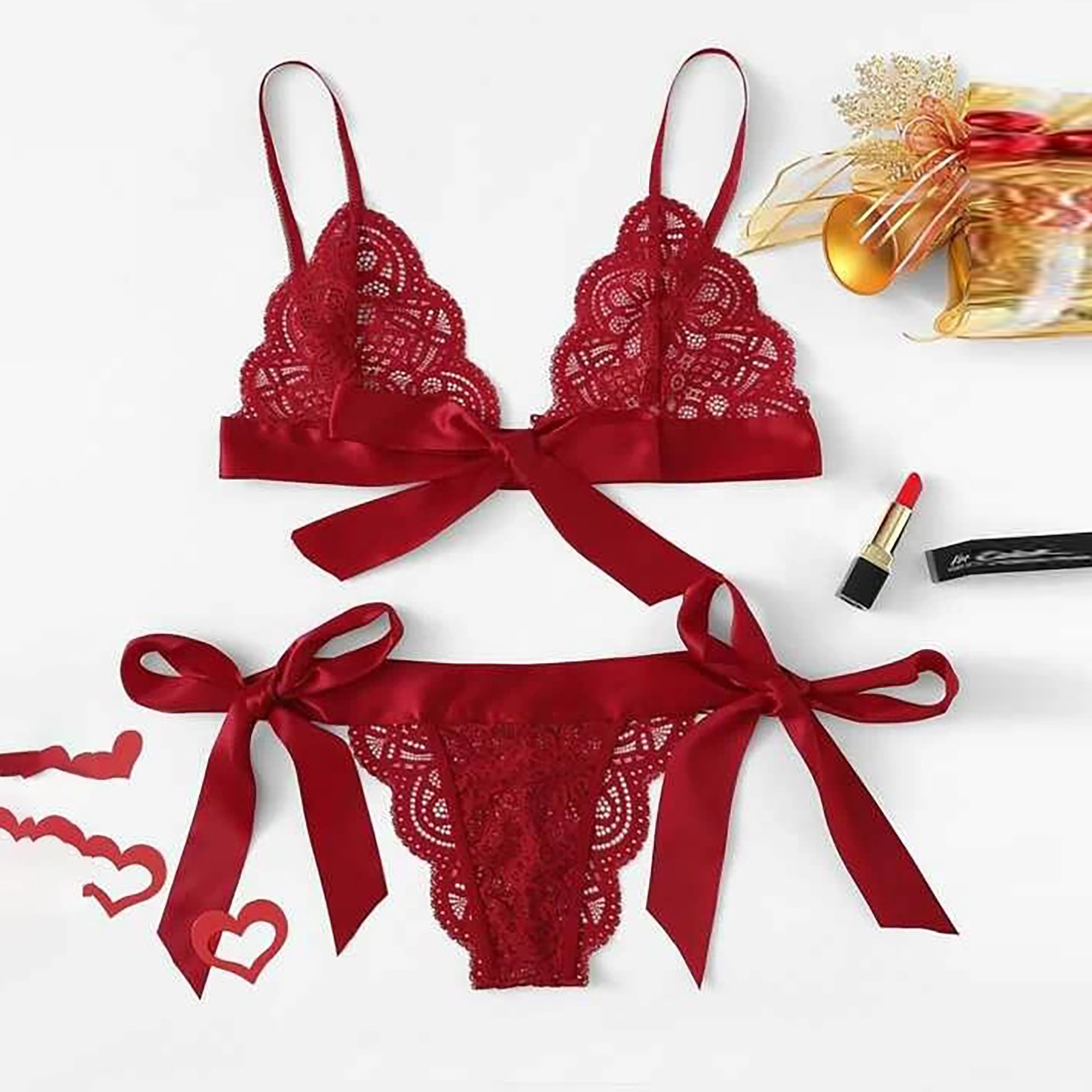 Женский модный сексуальный кружевной костюм из двух предметов, однотонный беспроводной бюстгальтер, сексуальное нижнее белье, трусики