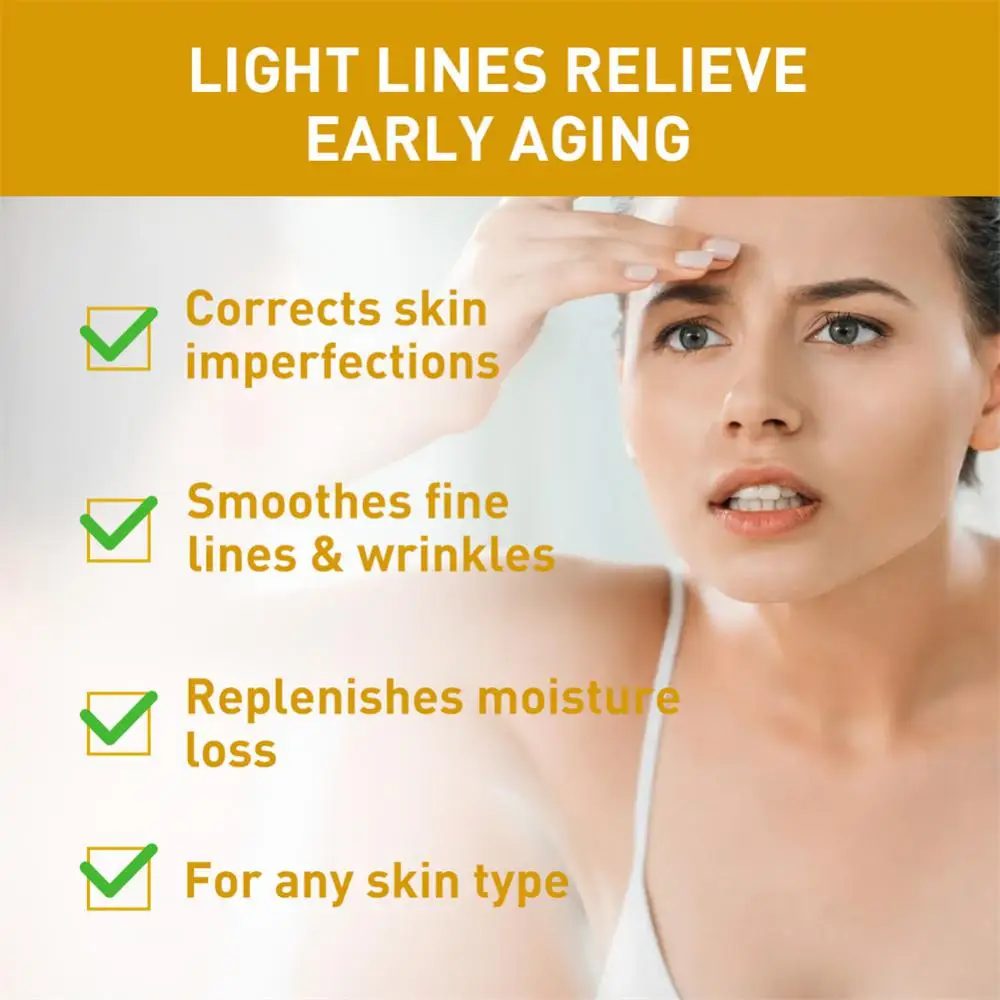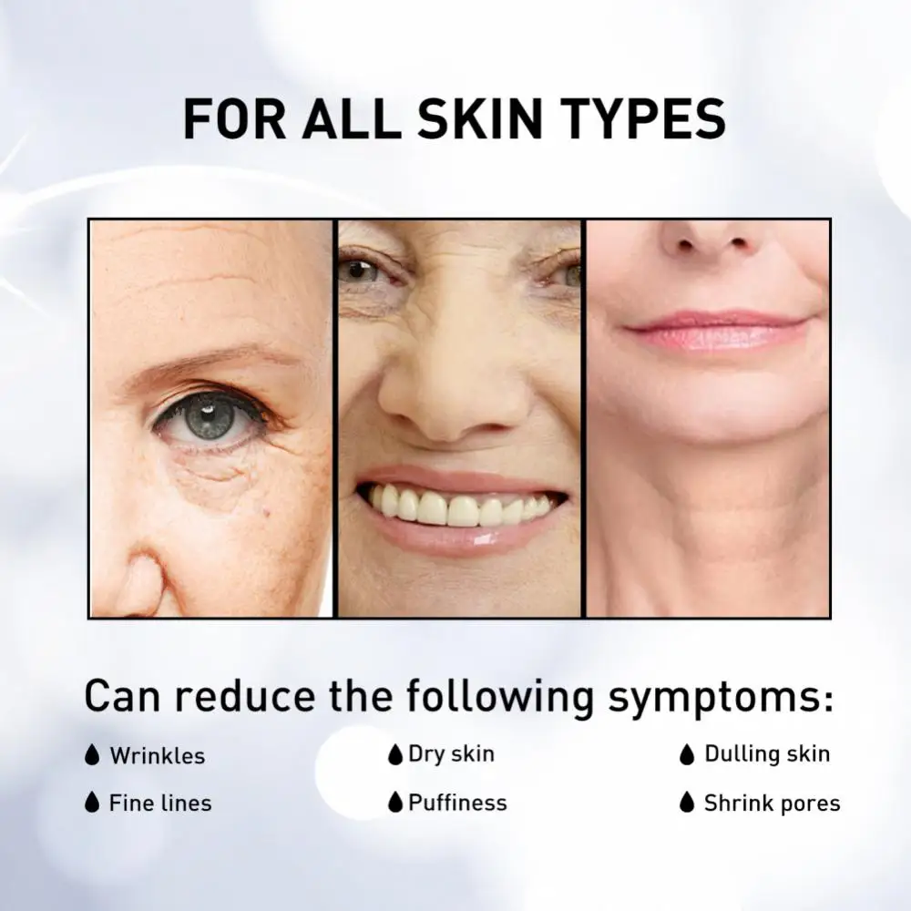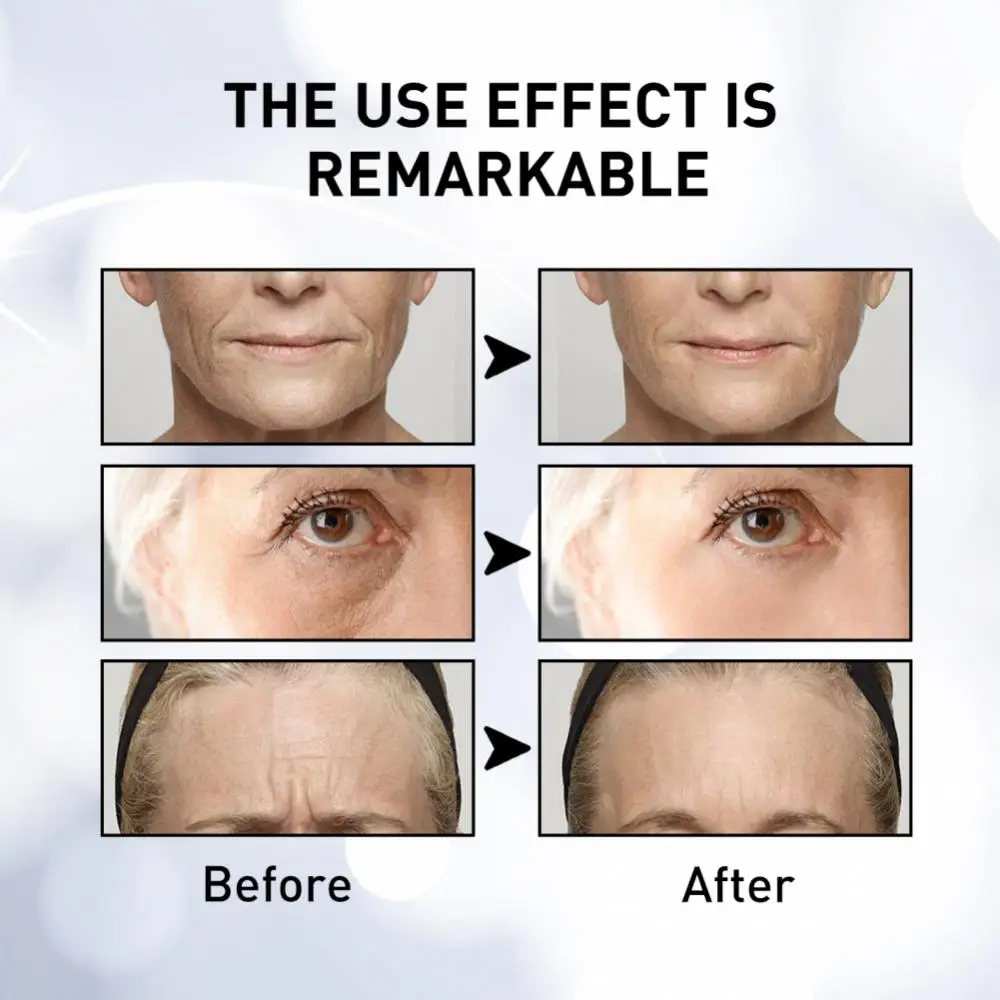 Удаляет морщины, повышает эластичность кожи, подтягивает и укрепляет кожу и уменьшает тонкие линии.