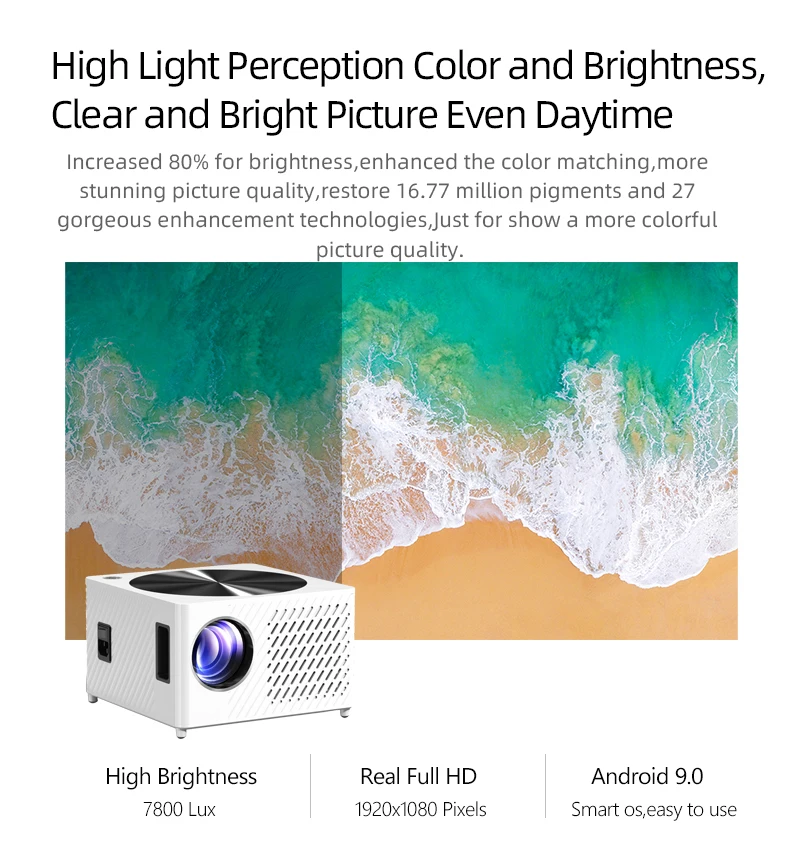 Разрешение 1920x1080 пикселей, версия android поддерживает 4K, наслаждайтесь четким качеством изображения