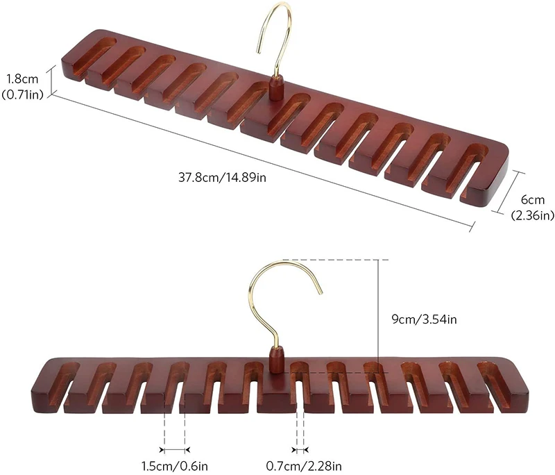 Премиум вешалка для пояса из орехового дерева-в отличие от других дешевых пластиковых вешалок, эти роскошные вешалки изготовлены из высококачественной твердой древесины, имеет золотой хромированный крючок, 12 слотов для ремней. Привлекательный дизайн из темного дерева придает стильный вид вашему гардеробу и соответствует вашим другим деревянным вешалкам.