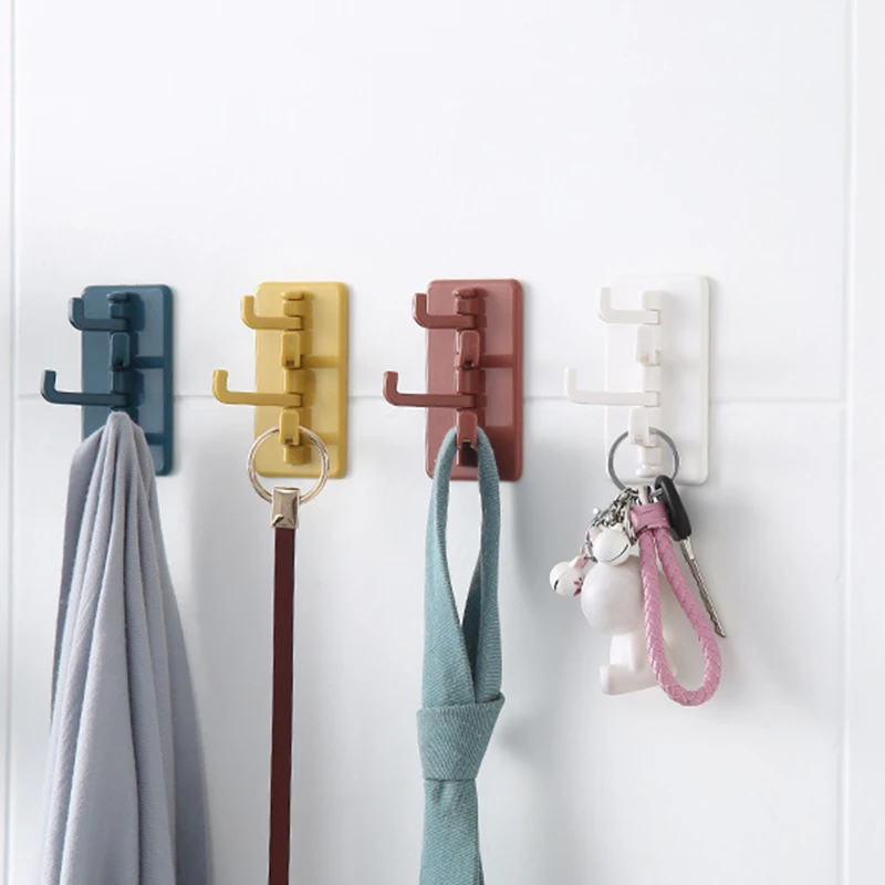 Настенный крючок для ключей, крючок для ванной комнаты, кухонный крючок без следов, пластиковый вращающийся крепкий крючок