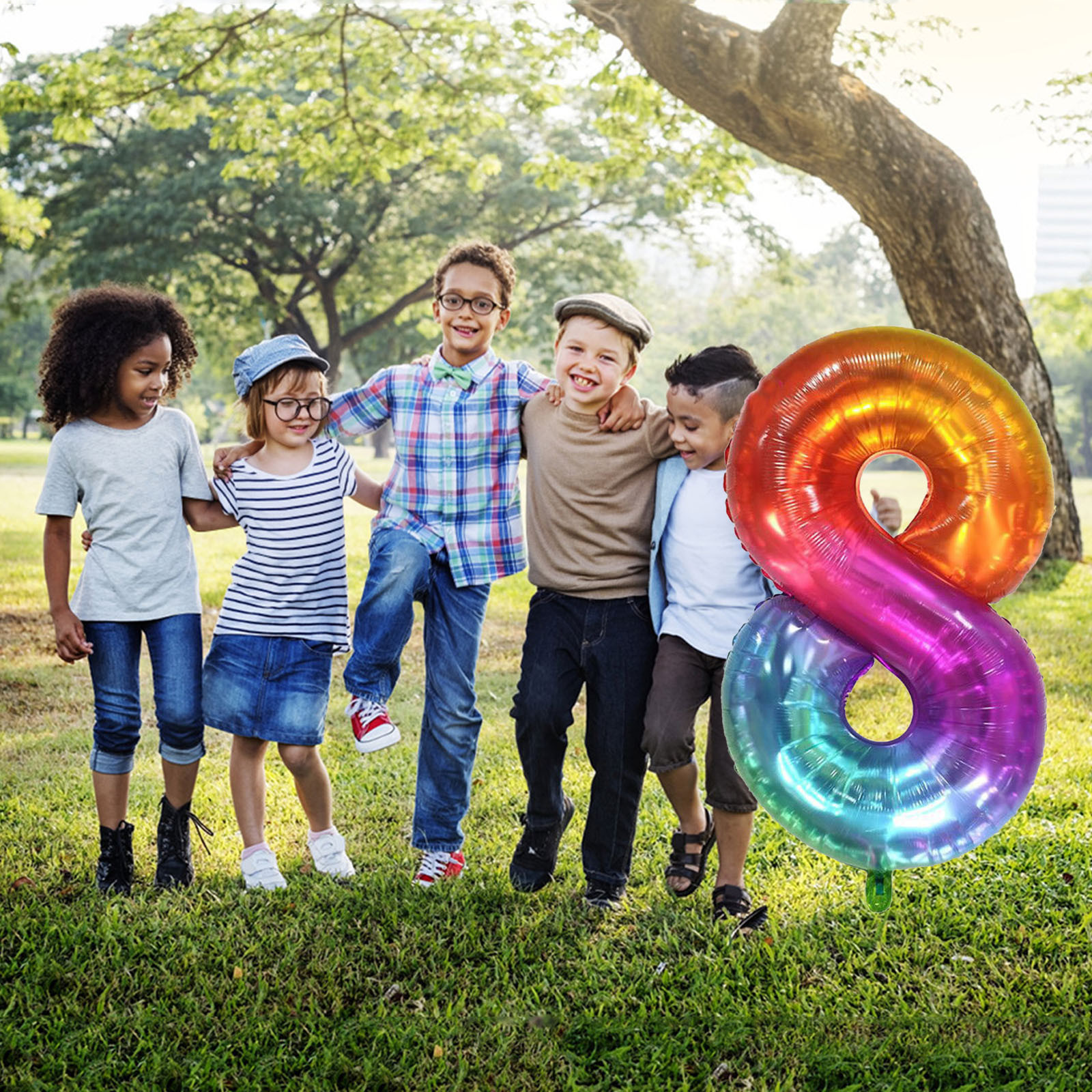 LARGE SIZE - 40" | USE WITH OTHER SINGLE NUMBER 8 BIRTHDAYS - This colorful party 8th birthday is a party accessory you shouldn't miss. Add a of color to your decor with the 101.6 cm Giant Jelly Rainbow Foil , 1 White Ribbon and 1 Straw. Perfect with 8 Number Balloons for 85th Birthday, 80th Birthday, 18th Birthday or 80th Anniversary!