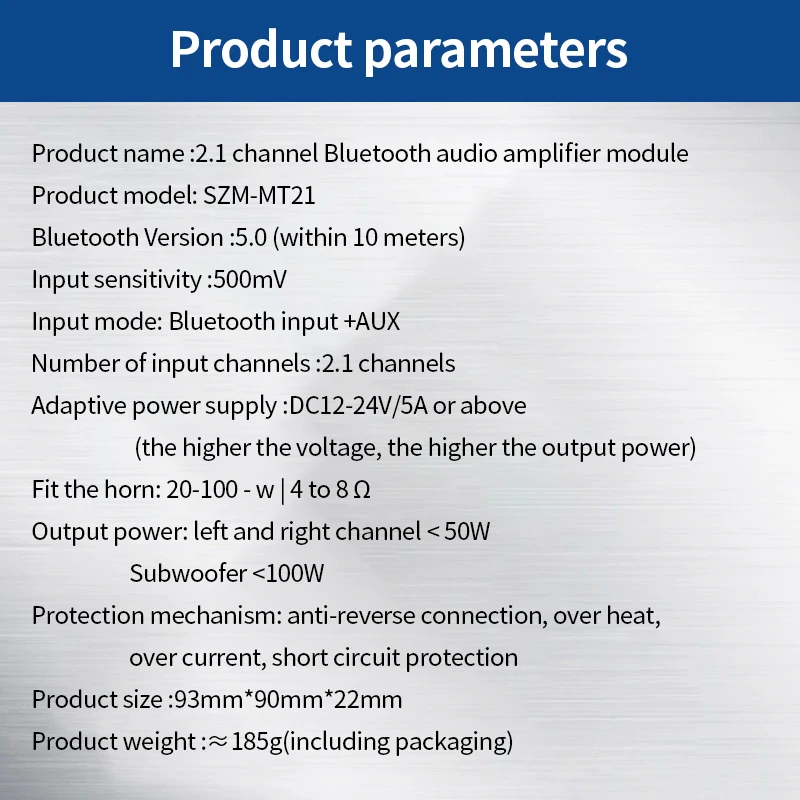 4.[Bluetooth AUX]Этот модуль усилителя мощности поддерживает 2 режима ввода, включая bluetooth и Aux, вы можете заказать в соответствии с вашими потребностями.