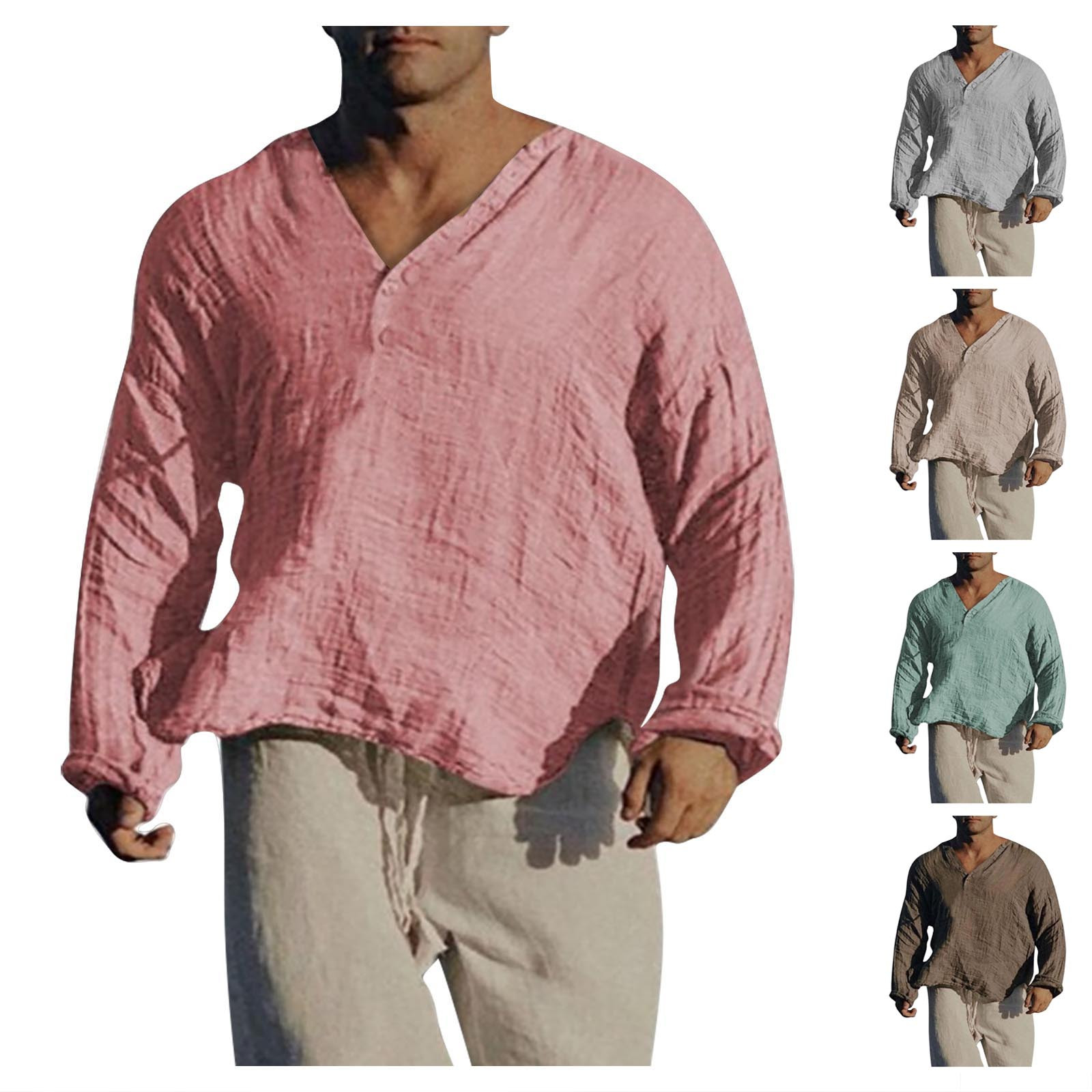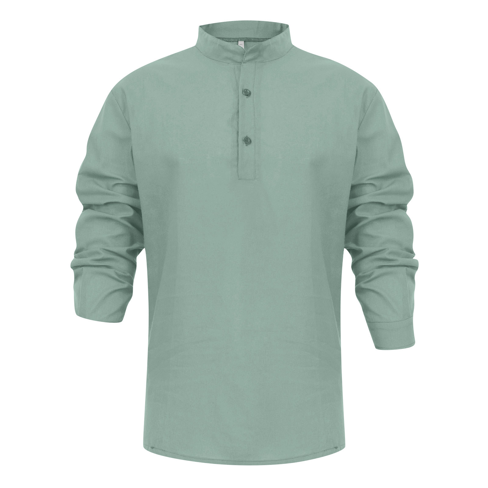 Дизайнерские весенне-летние мужские повседневные хлопковые однотонные рубашки с длинными рукавами свободные рубашки с воротником-стойкой