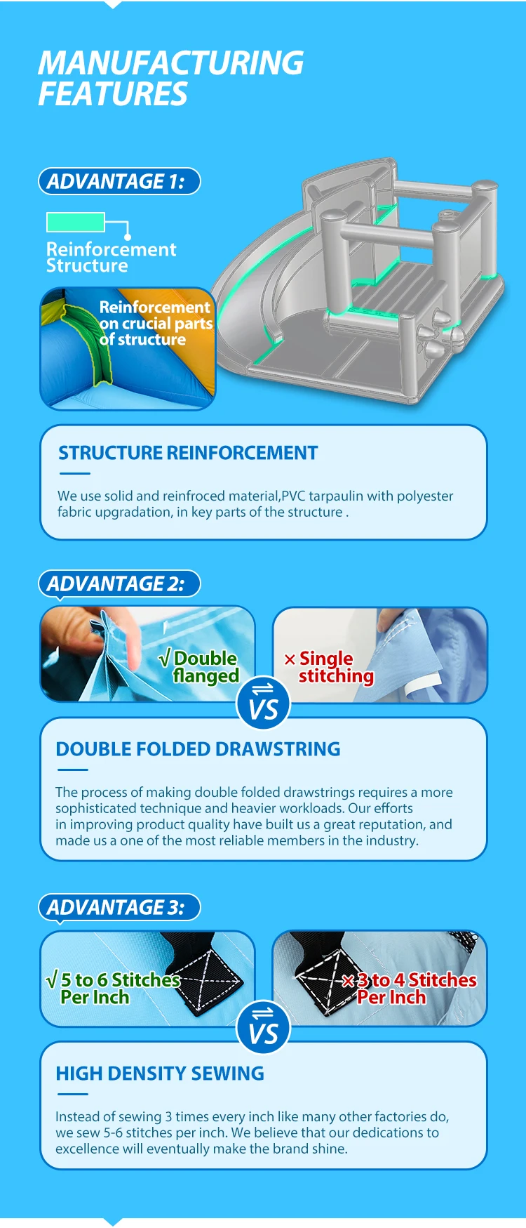 【Прочный и безопасный 】 зона прыжков окружена сетками безопасности, которые достаточно высоки, чтобы предотвратить падения на землю. И утолщенные и поднятые перила по бокам горки предотвращают выпадение снаружи.