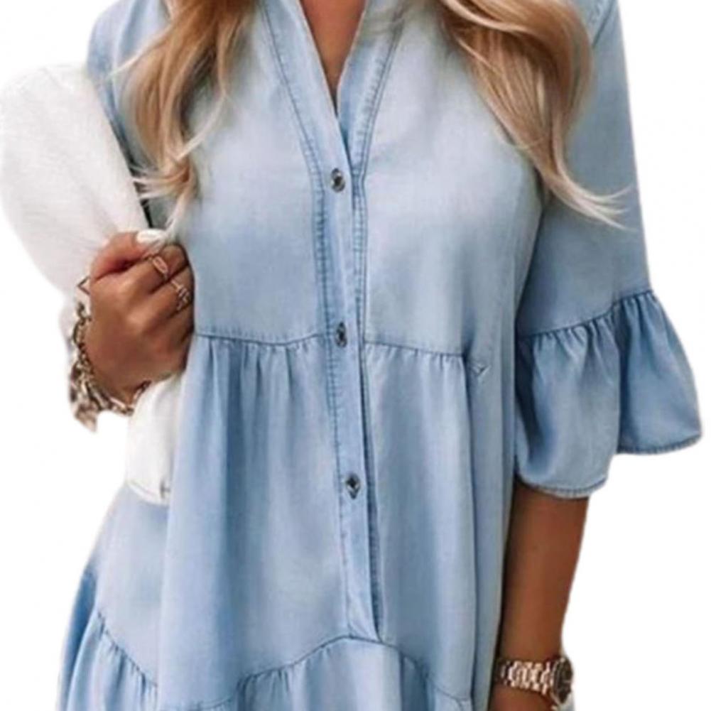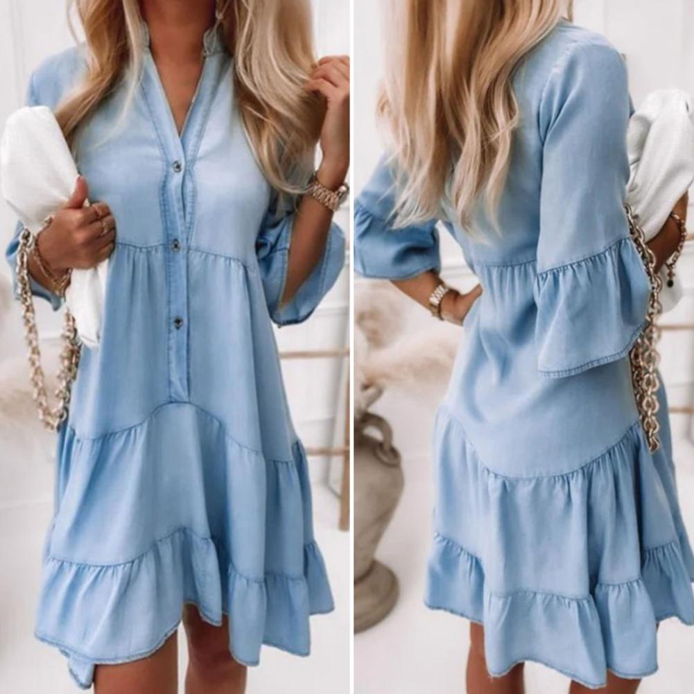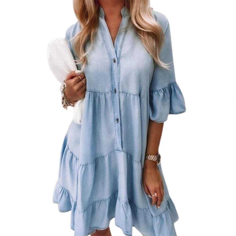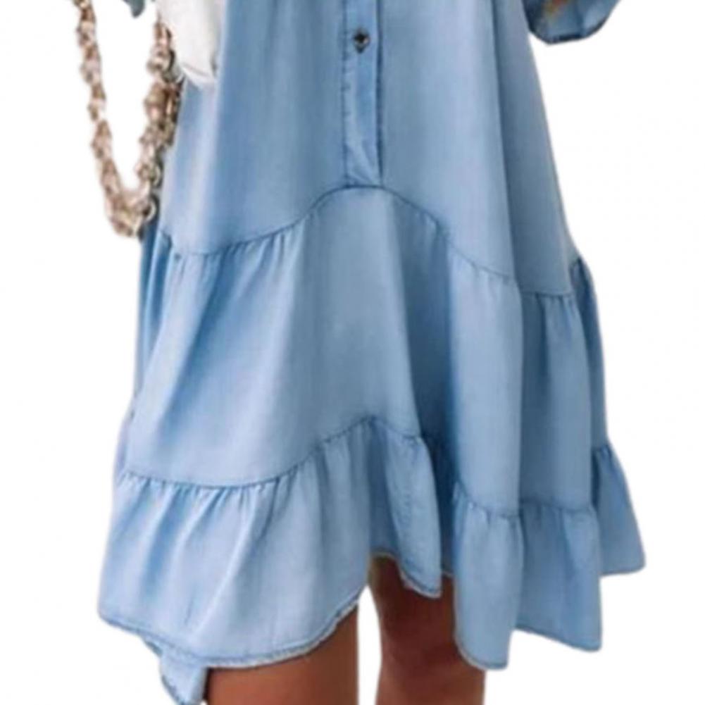 Основные особенности этого платья включают воротник-стойка, большой подол, лоскутное шитье, оборки и однотонный дизайн, все из которых делают это платье таким модным и красивым.