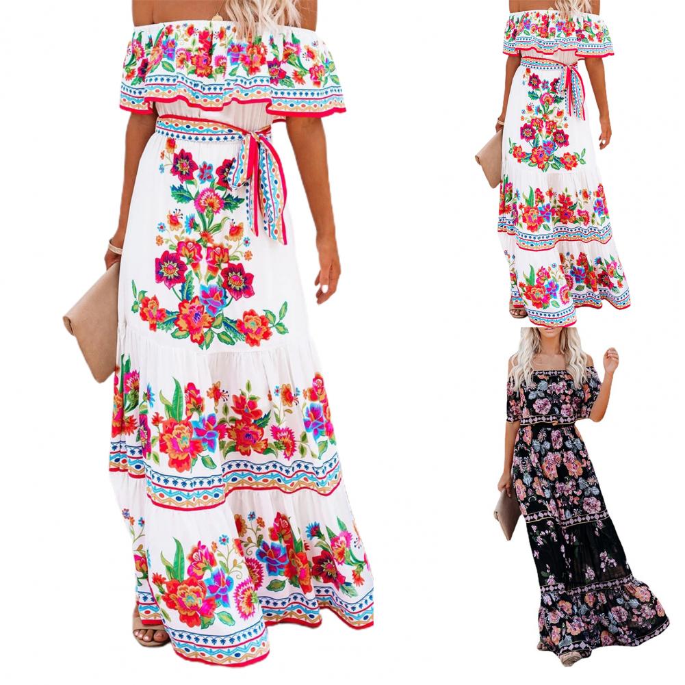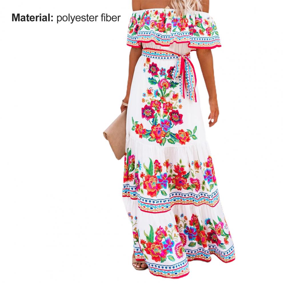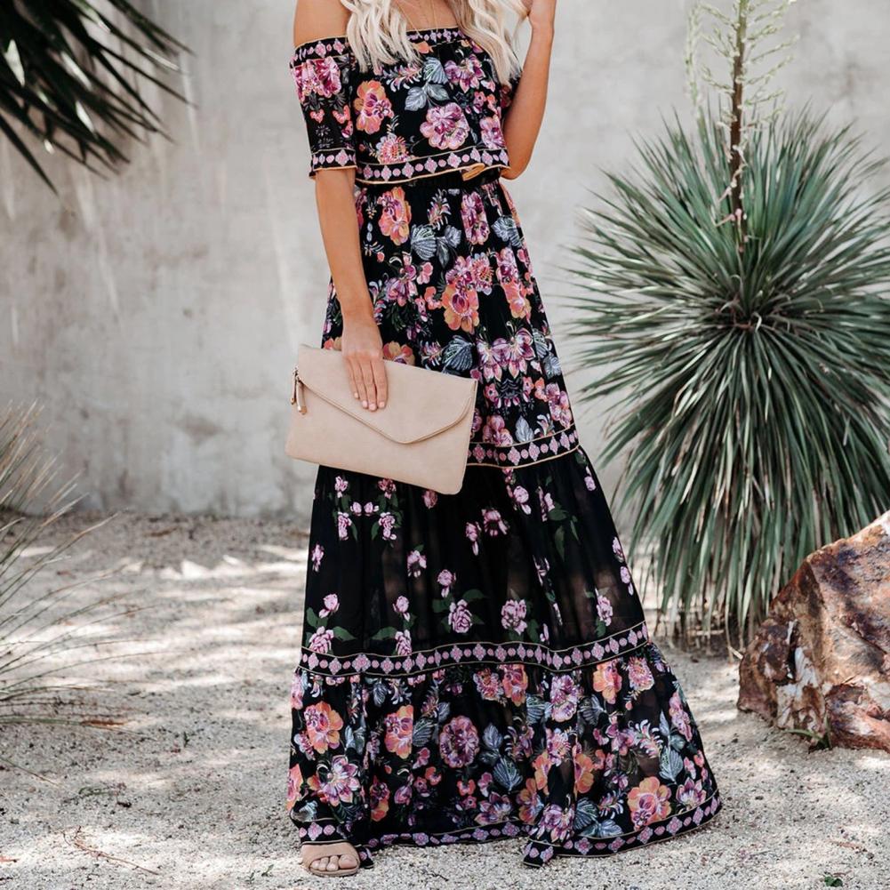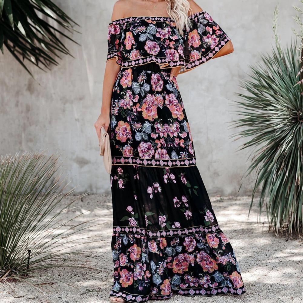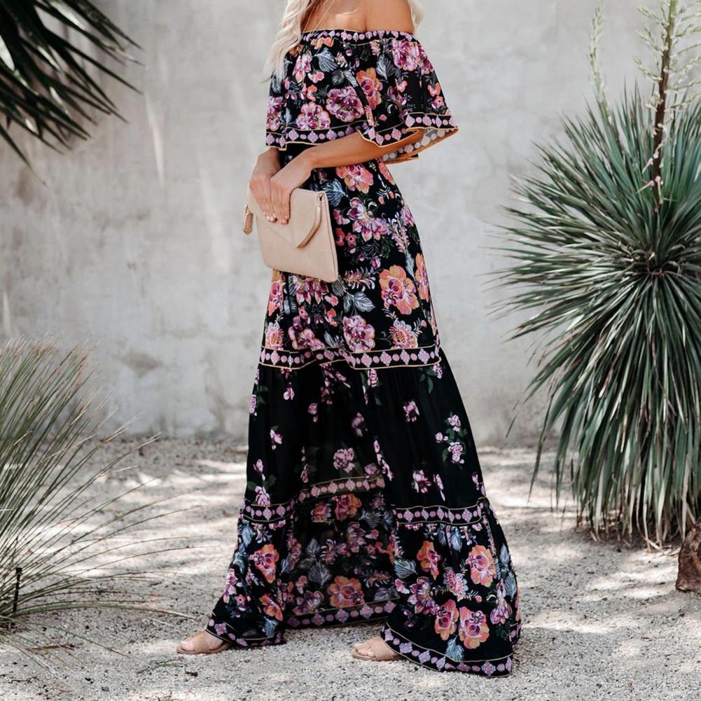 Горизонтальный дизайн плеч делает платье более сексуальным. Широкое Платье с подолом делает вас очень удобными и свободными в носке.