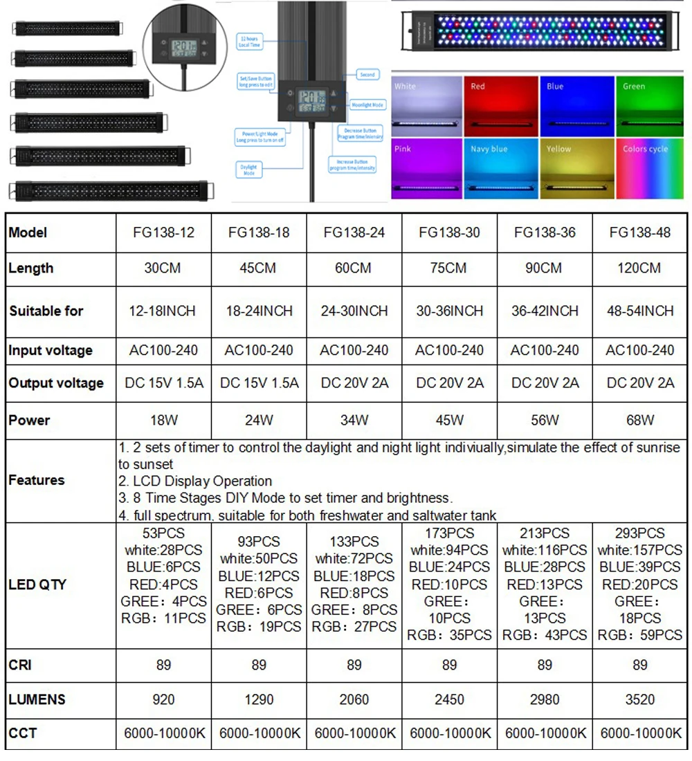 Этот новый аквариумный светильник разработан с собран в таймер, программируемый сумерки, 2 канала Дневной светильник и луна светильник самостоятельно.Хороший эффект на зеленые водные растения, идеально подходит для пресной воды или морской рыбы-только и низкий-высокий уровень светильник аквариумных растений.