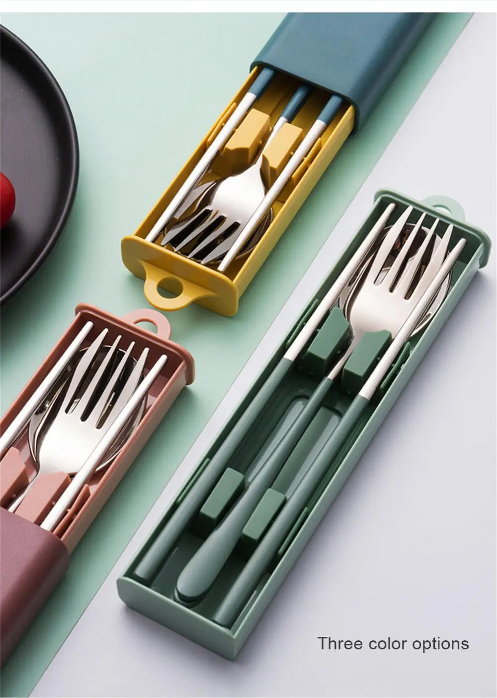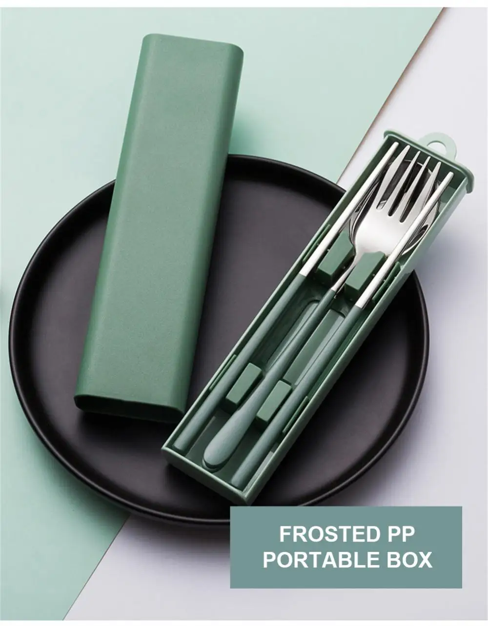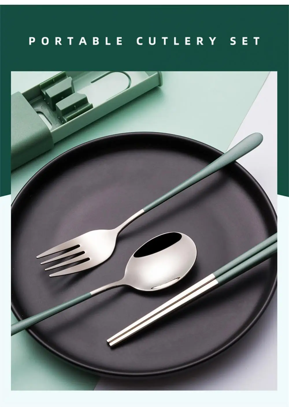 Портативный набор столовых приборов, набор посуды, высокое качество, нержавеющая сталь, нож, вилка, ложка, экологичные, дорожные столовые приборы с коробкой