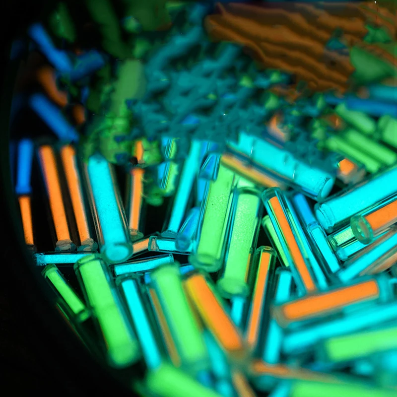 -Серебристая трубка заряжается, чтобы излучать светильник, можно использовать фиолетовую лампу, солнечный светильник, мобильный телефон, флэш-светильник, настольную лампу и другую зарядку от облучения, яркость от остановки зарядки начала постепенно снижаться.