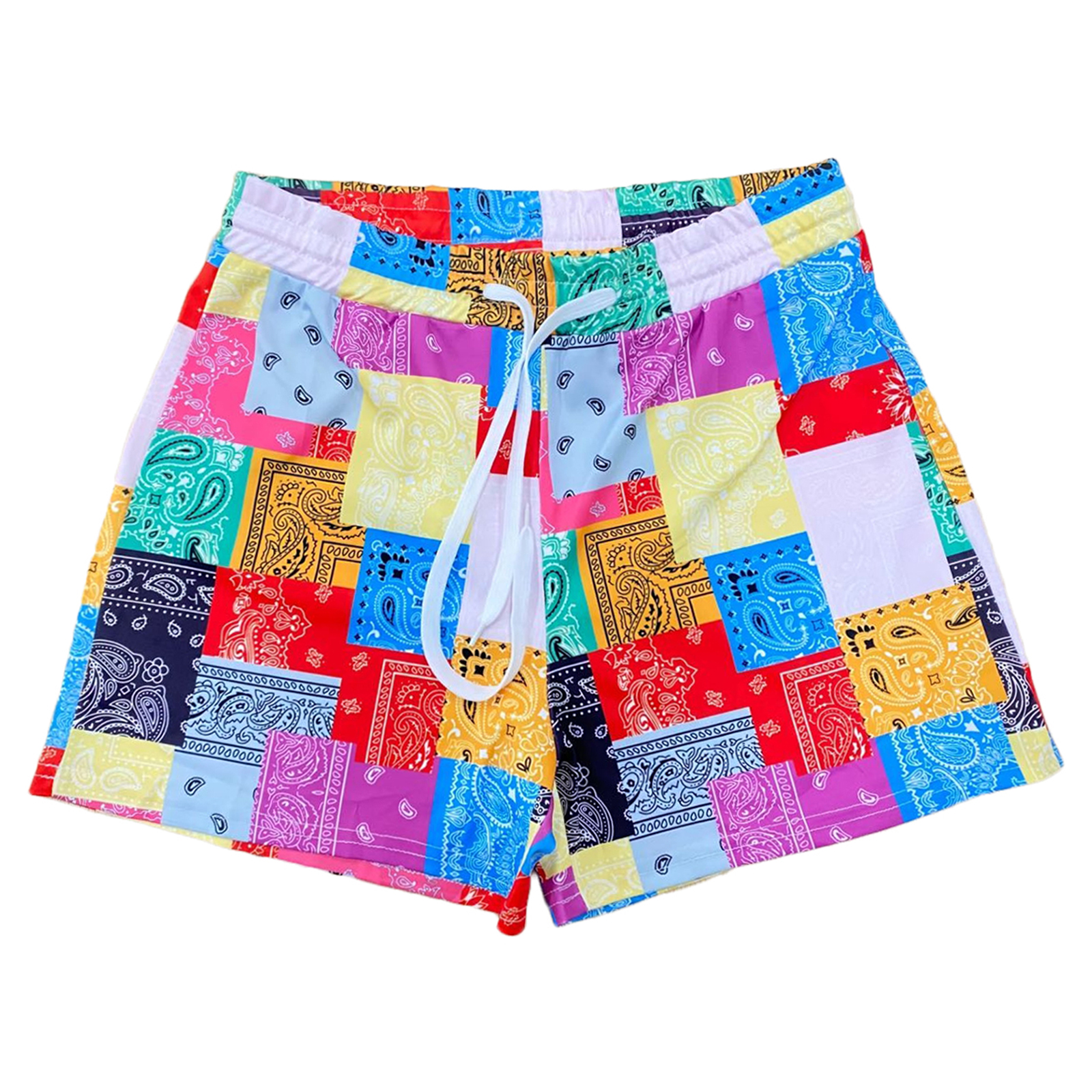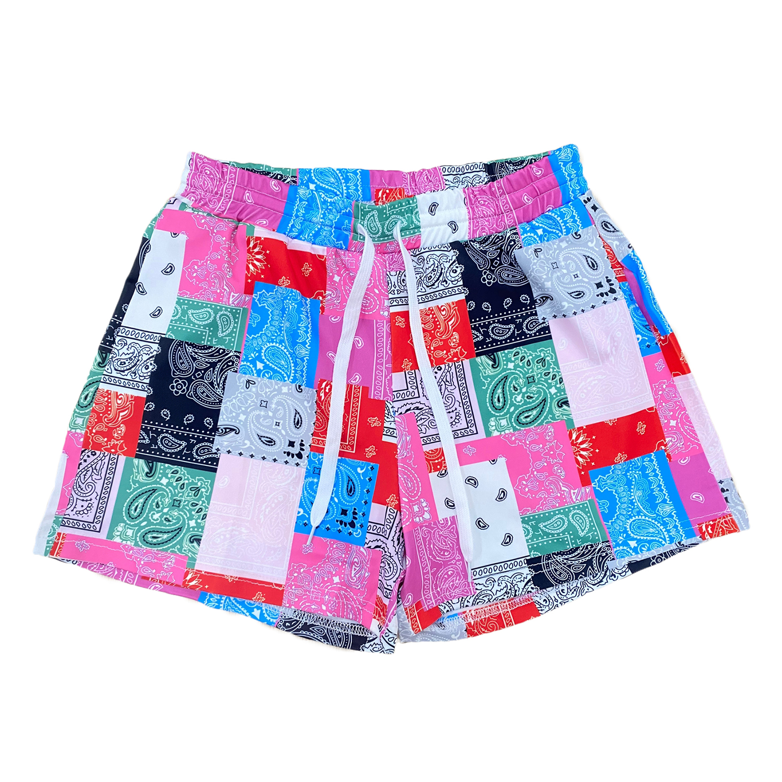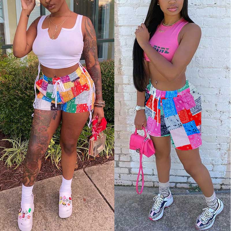 Женские пляжные шорты с цветочным принтом, эластичные шорты с высокой талией
