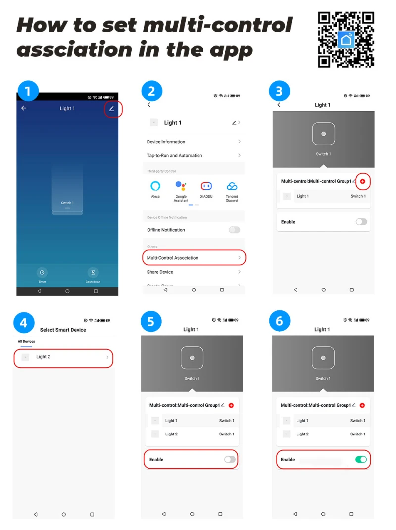 【Легкая НастройкаСканируйте руководство пользователя qr-код, загрузите приложение Smart life/TUYA, или скачать в App Store или Google Play Store и подключите ваше мобильное устройство к 2,4 ГГц сети Wi-Fi для того, чтобы найти ваш светильник переключатель, затем вы можете легко повернуть светильник s или управлять другими электрическими устройствами.