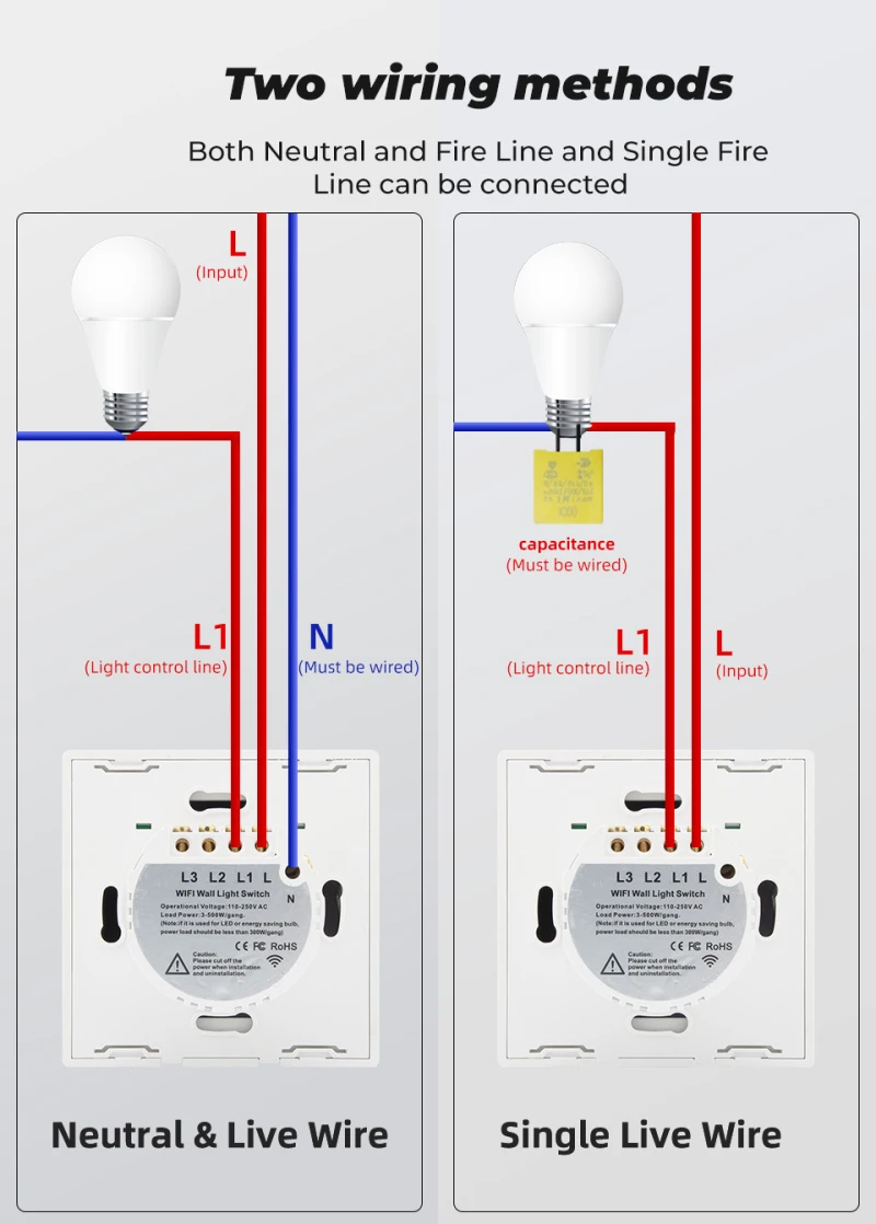 【Два способа подключенияПоддержка нейтральной системы и без нейтральной системы. Поддержка одной пожарной системы, но вам нужен конденсатор, когда вы не используете нейтральную систему. (конденсатор включен.)