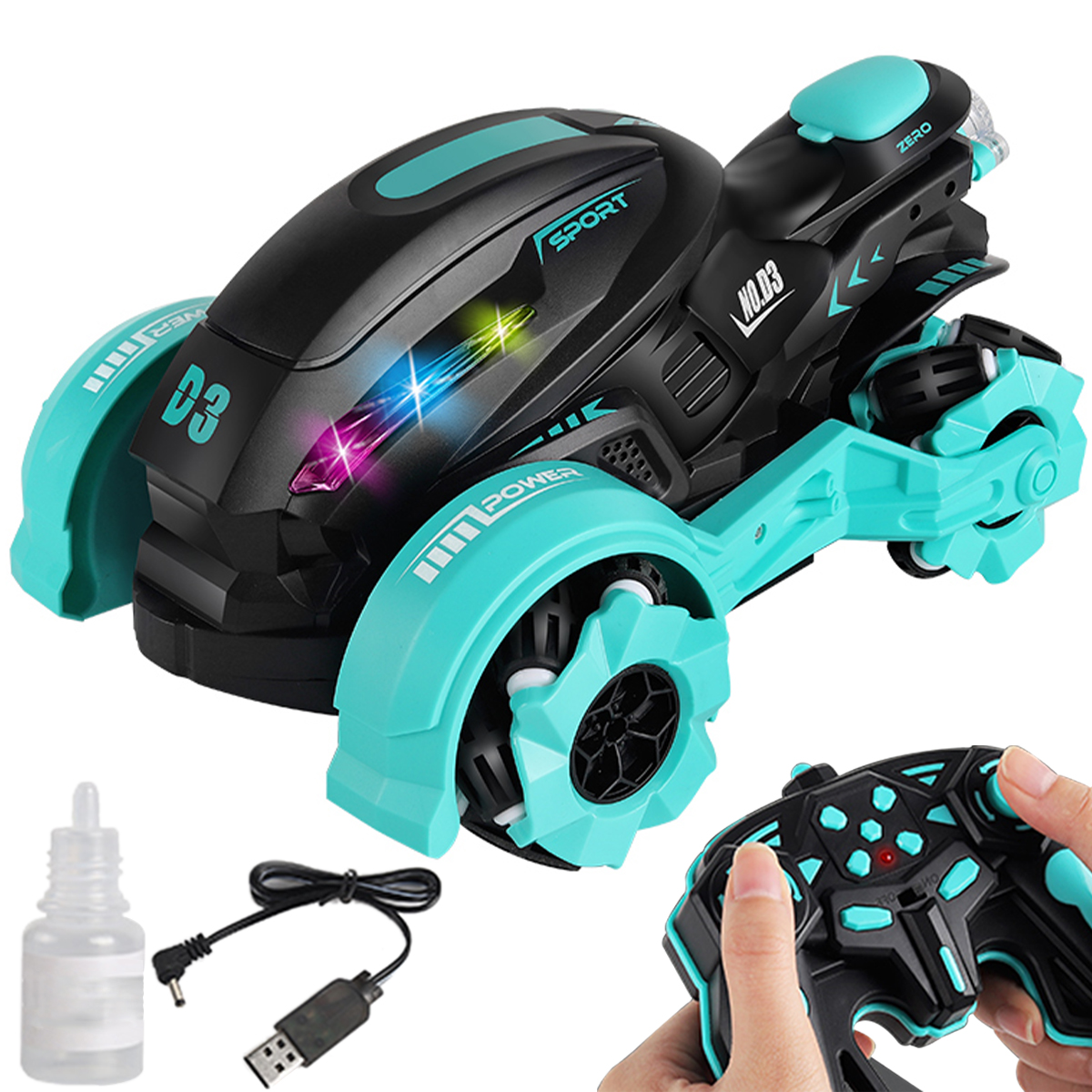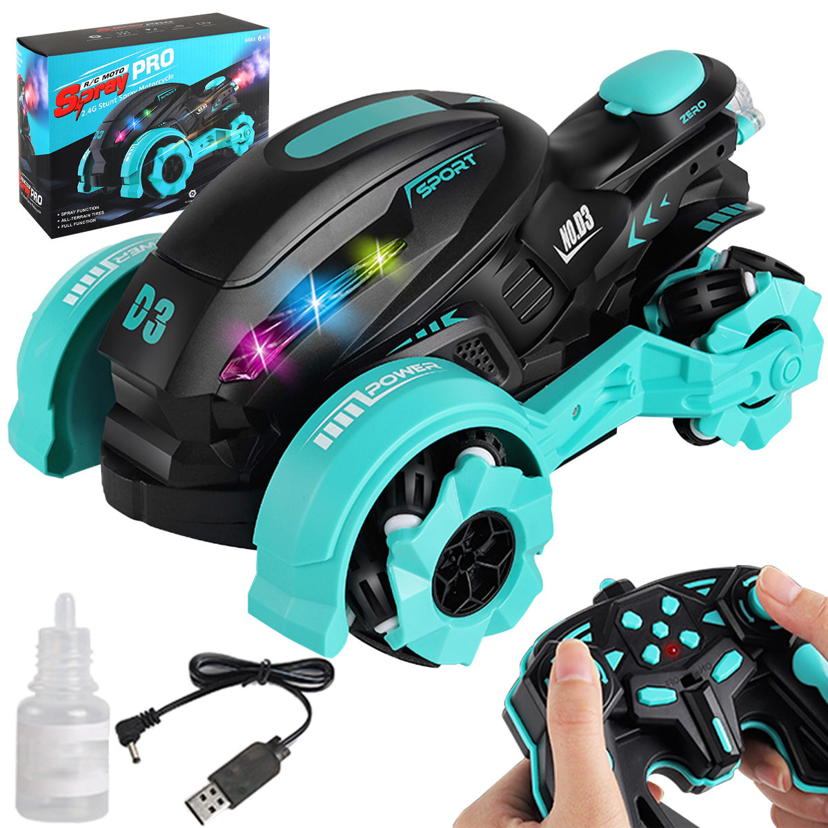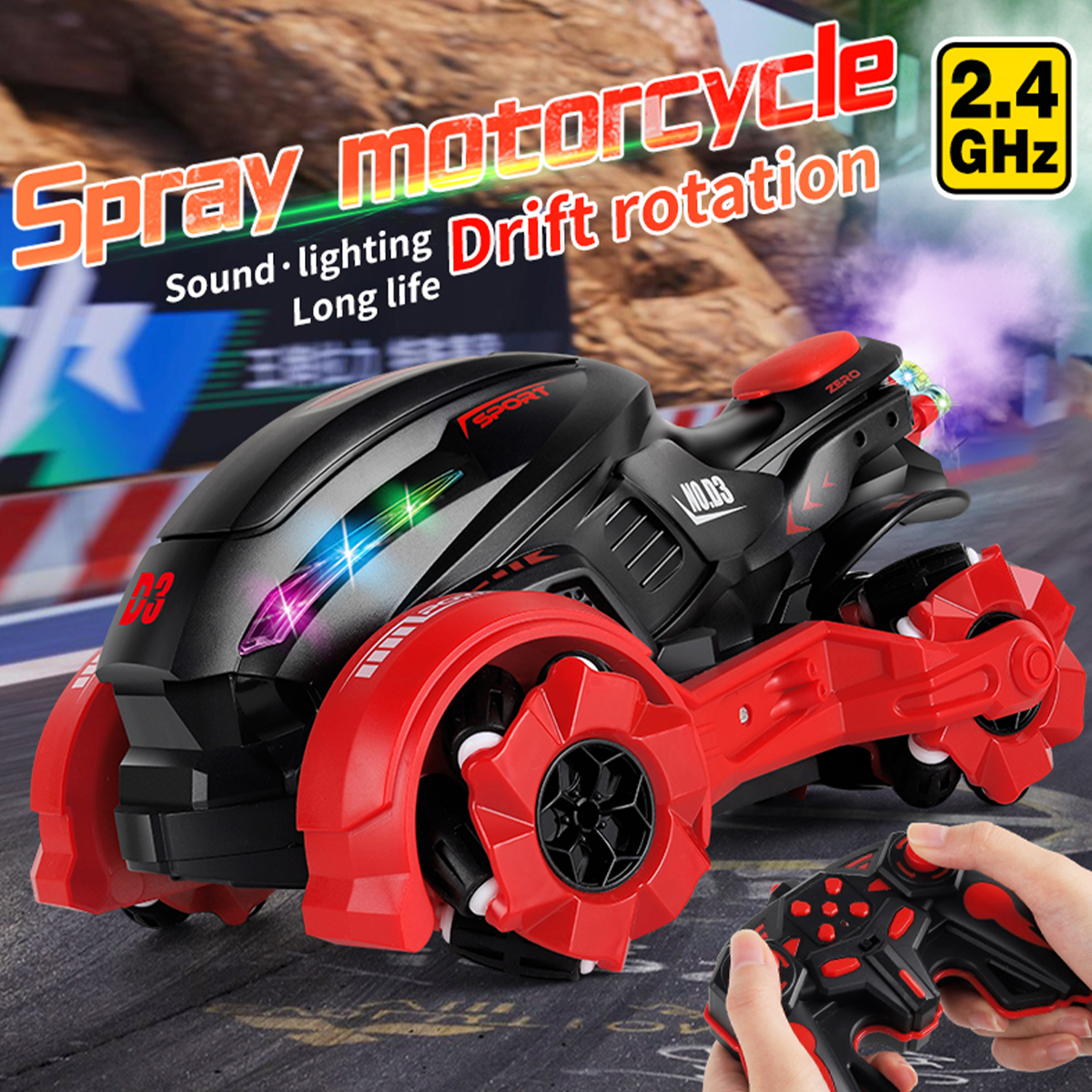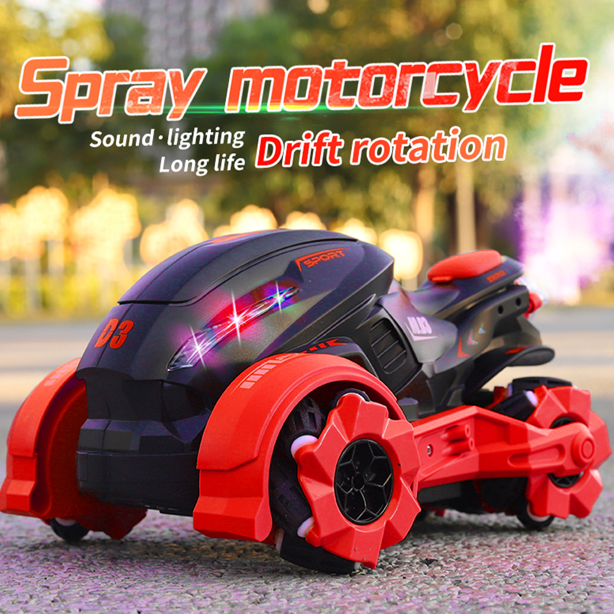 [С системой распыления] задняя часть мотоцикла с дистанционным управлением оснащена светодиодный светильник и противотуманной системой. После того, как вы заполните воду в маленький чайник, он может выпустить поток тумана, когда автомобиль работает. Клавиша распыления на пульте дистанционного управления облегчает работу игрового игрока.