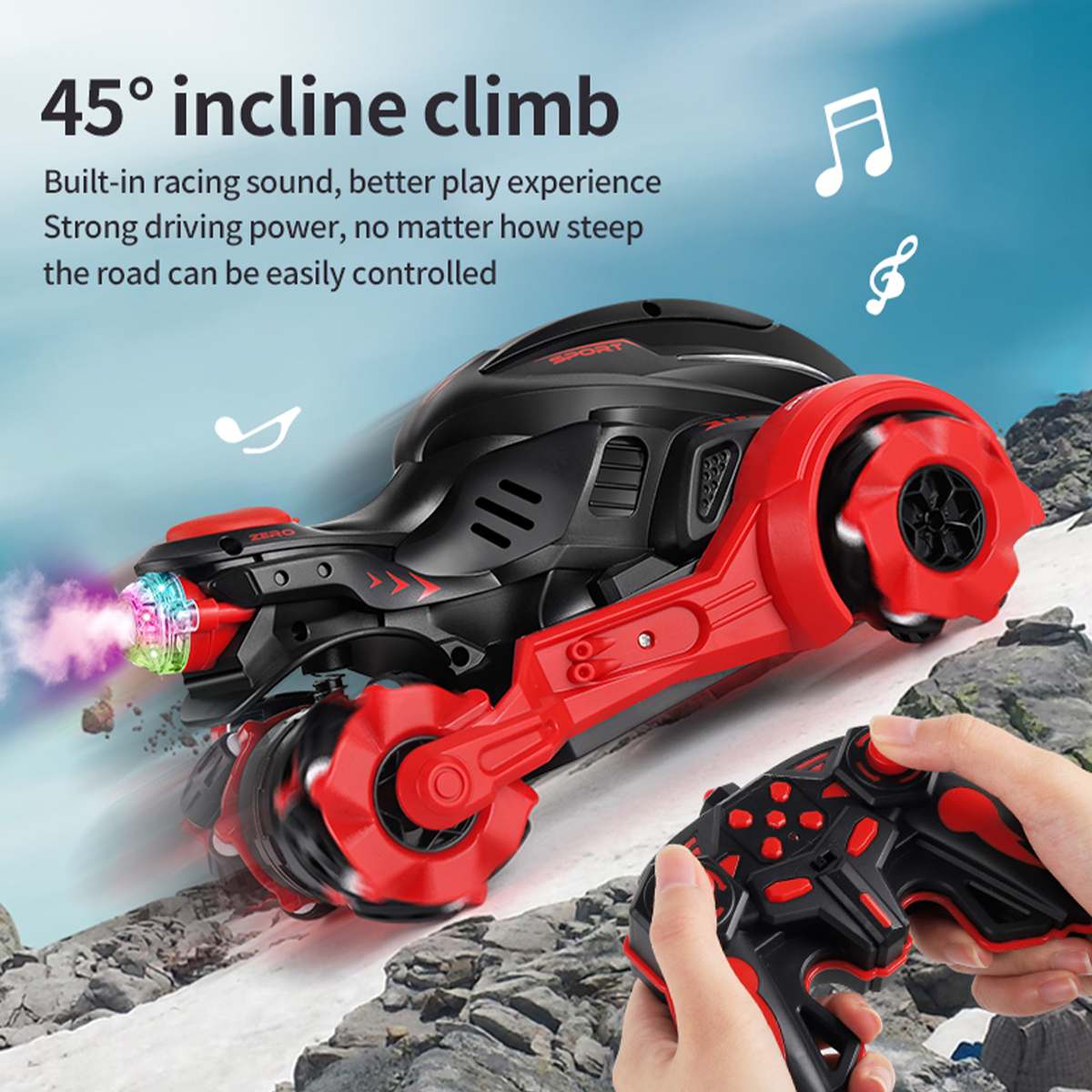 Внедорожный мотоцикл имеет слайд вперед, боковые трюки, рампы трюки, сильное скалолазание, вращение на 360 °, 8 музыкальных функций и быстрых поворотов, удовлетворяя любое воображение внедорожных мотоциклов.