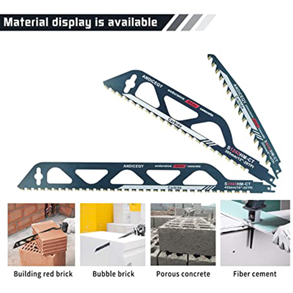 [Широкое применение] Эти сабельные пилы широко используются для резки пористого бетона, красного кирпича, волокнистого цемента, стекловолокна, эпоксидной смолы, подходит для шлифования материалов, резки древесины. И т. д.