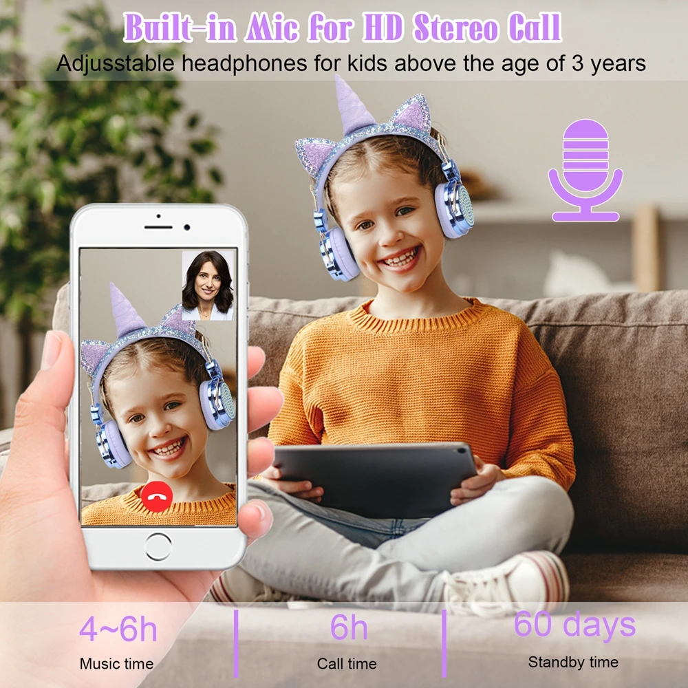 Милые Мультяшные Беспроводные Bluetooth 5,0 наушники с единорогом Встроенный микрофон