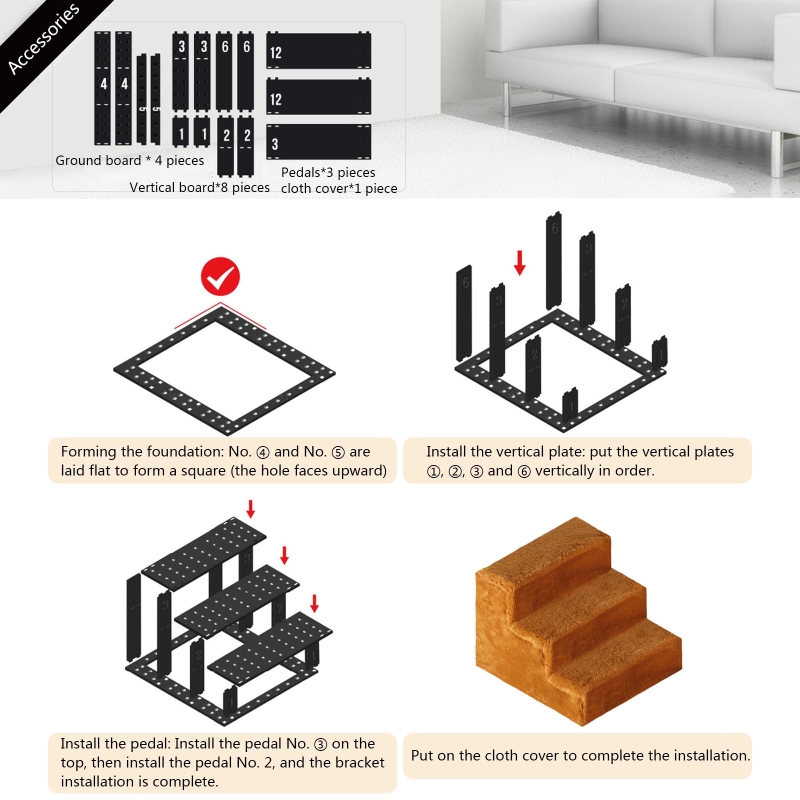 Посылка включает в себя: 1 шт. 3 уровня лестницы для домашних животных (требуется сборка)