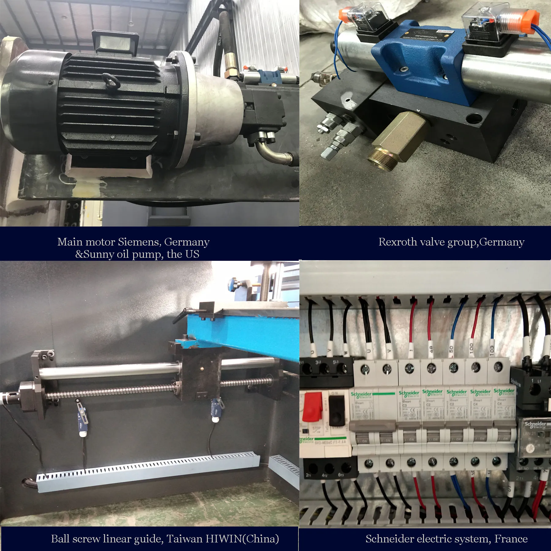 Основная конфигурация-импортная Высококачественная продукция, а профессиональная команда контроля качества продукции обеспечивает высокое качество, точность и срок службы машины. Например, Германия Bosch-Rexroth Клапанная группа, Германия Siemens главный двигатель, Schneider электрика системы и так далее. После того, как наша машина будет протестирована как квалифицированная, она будет отправлена. Поэтому качество нашей продукции является стабильным и надежным.