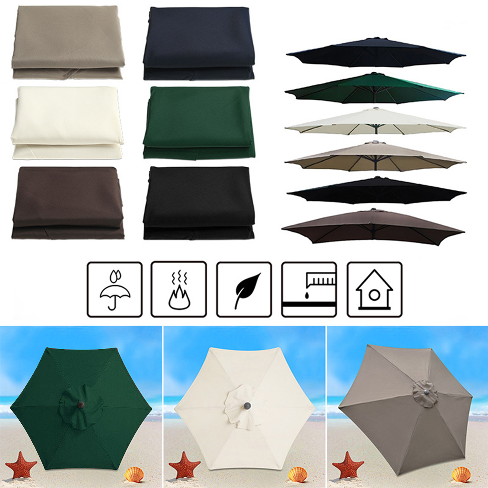 5. Идеально подходит для деревянных, стальных, алюминиевых рам; Подходит для 2 м/6,56 футов 6 ребер или 3 м/9,84 футов 6 / 8 ребер зонтичной рамы.