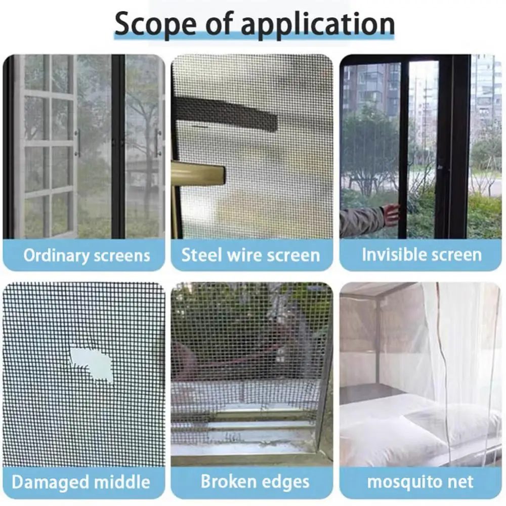 Зафиксируйте отверстия и слезы на оконных экранах, дверях экрана, сетке тентов, экранах бассейна, экранах RV и т. д.