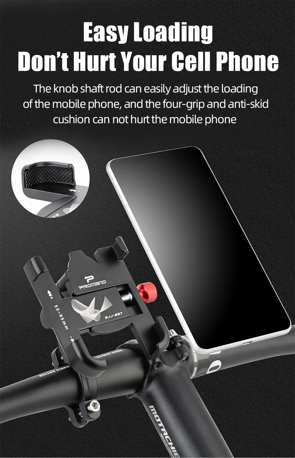 Стержень вала ручки может легко регулировать нагрузку на мобильный телефон, а четырехзахватная и противоскользящая Подушка не повредит мобильный телефон