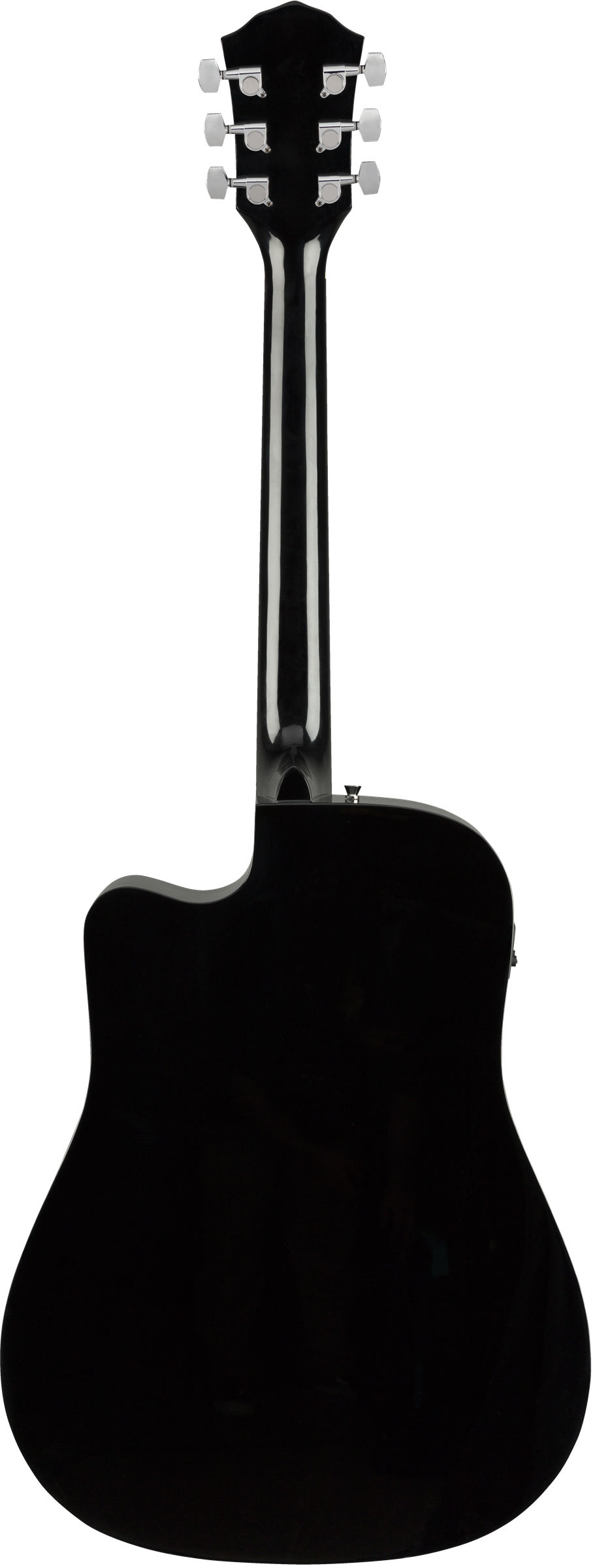 Fender FA-125CE - 6-струнная акустическая гитара со звукоснимателем в корпусе дредноут с вырезом. Модель сочетает в себе элегантный стиль и характерное узнаваемое фендеровское звучание. Корпус гитары выполнен из высококачественной ламинированной древесины: нижняя дека и обечайка из липы, верхняя дека – из ели. В сочетании с головой грифа современной формы и бриджем Viking это даёт инструмент с отличным звуком, играть на котором легко и комфортно. Вклеенный гриф выполнен из древесины нато и снабжен накладкой из ореха. На грифе 20 ладов, инкрустированных точками. Корпус с глянцевой отделкой снабжен контрастным однослойным черным пикгардом. Розетка оформлена характерными для акустических гитар сери FA кольцами. На инструмент установлен пьезозвукосниматель и тембр-блок с ручками настройки Volume, Bass, Treble. Также тембр-блок оснащен тюнером.
