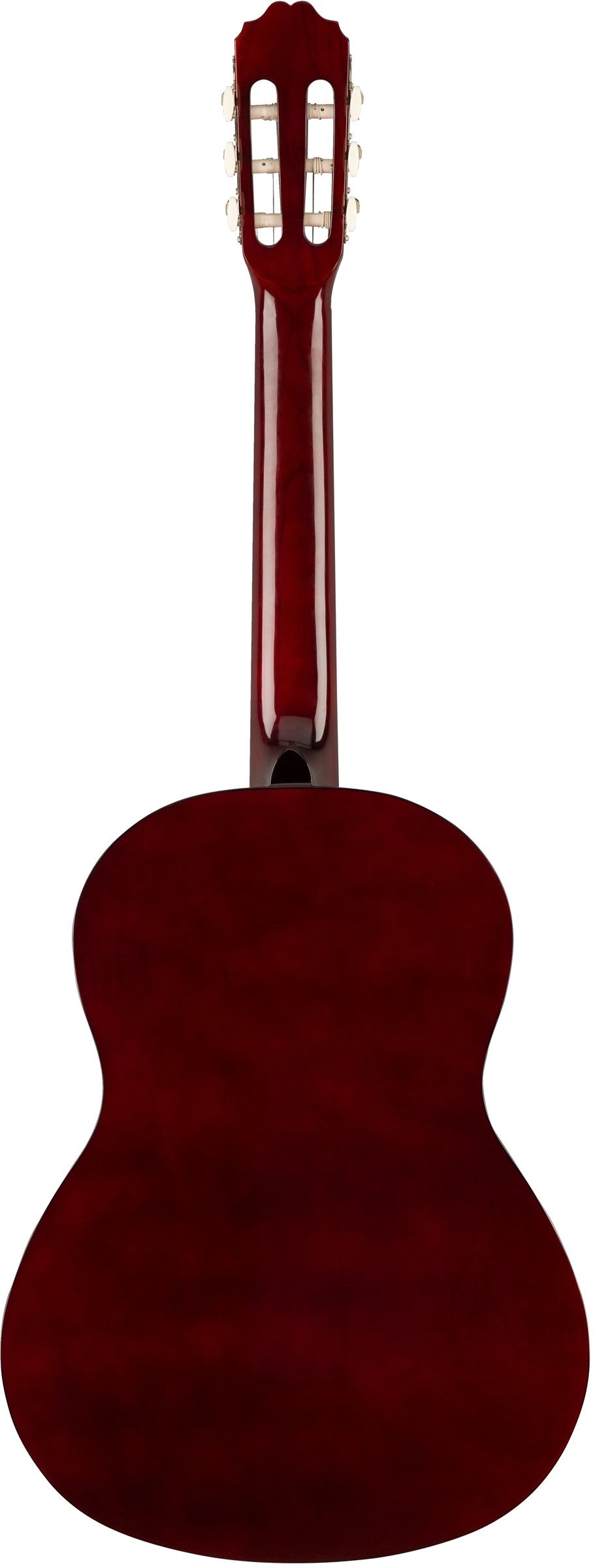 Тип: классическая гитара Количество струн: 6 Материал струн: нейлон Ориентация: для правшей Тип корпуса: классический Размер корпуса: 4/4 Верхняя дека: Липа (ламинированная) Нижняя дека: Красное дерево (ламинированное) Отделка: Глянцевый лак Пружины: Расположенные веером Розетка: Классический узор Гриф: Красное дерево Отделка: Глянцевый лак Накладка грифа: Клен (окрашенный), плоская накладка Лады: 19, Винтажный стиль Маркеры позиций: Точки Верхний порожек: Пластик, 2.04” (52 мм) Колки: Классический хромированные с перламутровыми бутонами Мензура: 25.6” (650 мм) Бридж: Клен (окрашенный) Пикгард: Нет Фурнитура: Хром Струны: Fender® Nylon Classical Tie-End (.028-.043)