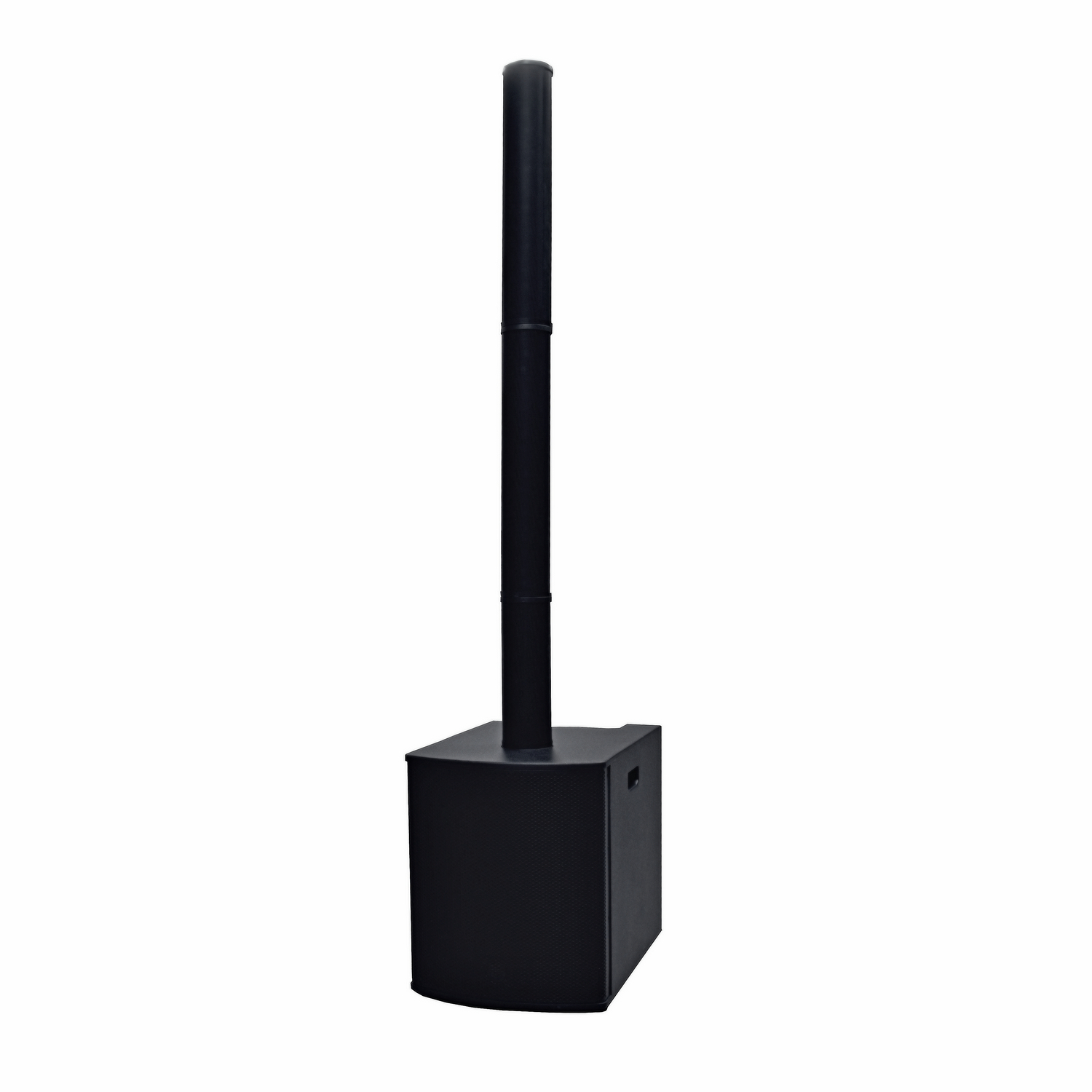 Нижняя часть колонны используется в качестве опоры для двух верхних сателлитов. Сабвуфер оснащен двумя усилителями класса D мощностью 1000 Вт. Все элементы управления, входы и выходы расположены на задней панели сабвуфера. Доступны 4 x микрофонных / линейных входа на разъем Combo XLR / и одного разъема RCA . Система оснащена встроенным DSP с такими программами, как LIVE / MUSIC / SPEECH / DJ. OLED-экран позволяет редактировать параметры, а также подключаться к ПК по локальной сети. В качестве источников сигнала доступны дополнительные модули MP3 и Bluetooth (поставляются отдельно) с дальностью работы до 10 метров.