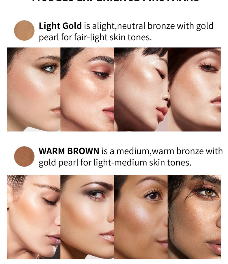 Использует светильник различных оттенков, отражающий жемчуг, чтобы льстить каждый тон кожи