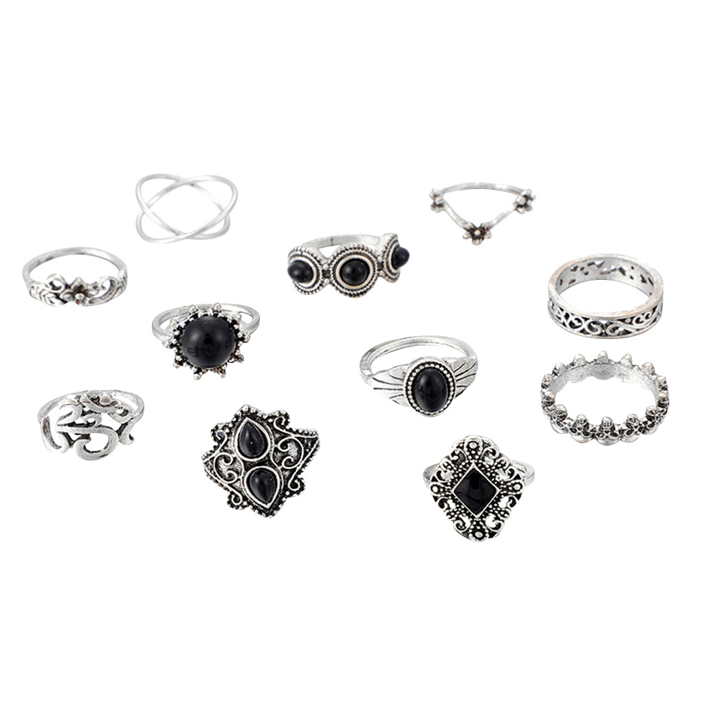 11 шт/набор женские богемные винтажные серебряные стек кольца выше суставов набор синих колец
