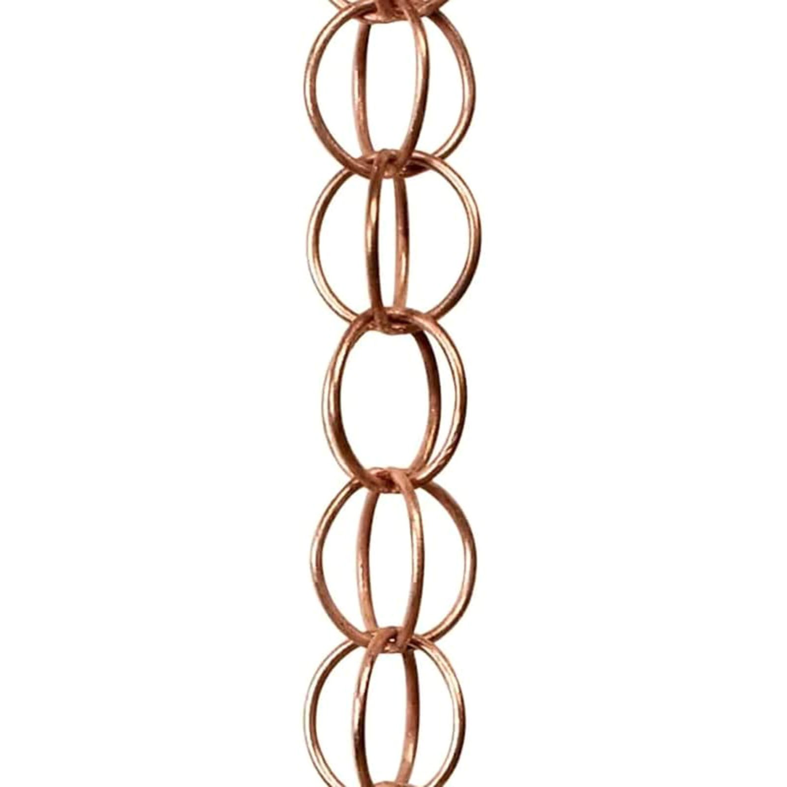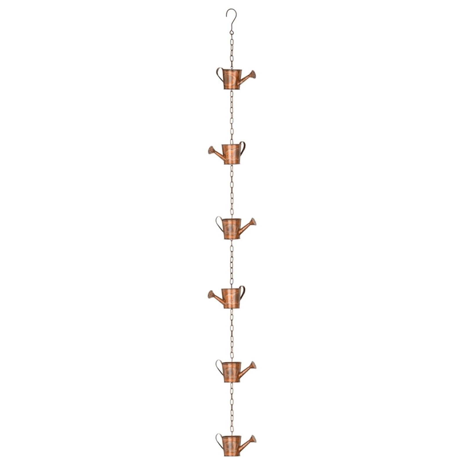 Изготовленная из металла с блестящей медной отделкой, эта цепочка для дождя дополнит любой вид декора на открытом воздухе. Это стильный способ наслаждаться звуком и видом дождя и может быть помещен на раковину или сливается для сбора воды. Самое лучшее, что колокольчики мягко капнут, как дождь проходит над ним.