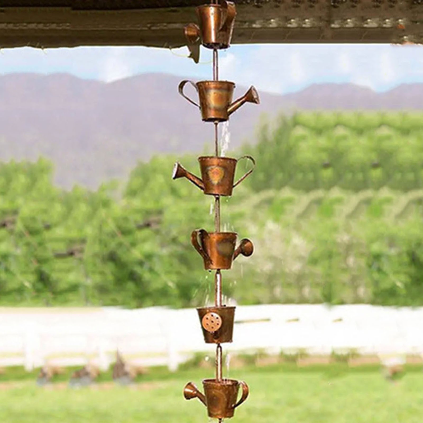 Дождевые цепи соединяют крышу с землей, поэтому дождевая вода может течь вдоль чашек и цепей к земле. В то же время чашка может предотвратить брызги воды из-за большого диаметра. В солнечный день, прослушивание успокаивающего звука колокольчиков ветра идеально.