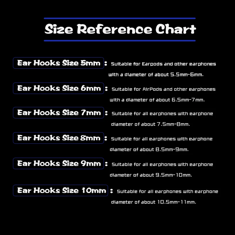 ➅Ear Крючки Размер 10 мм: подходит для всех моделей с наушниками диаметром около 10,5 мм-11 мм.