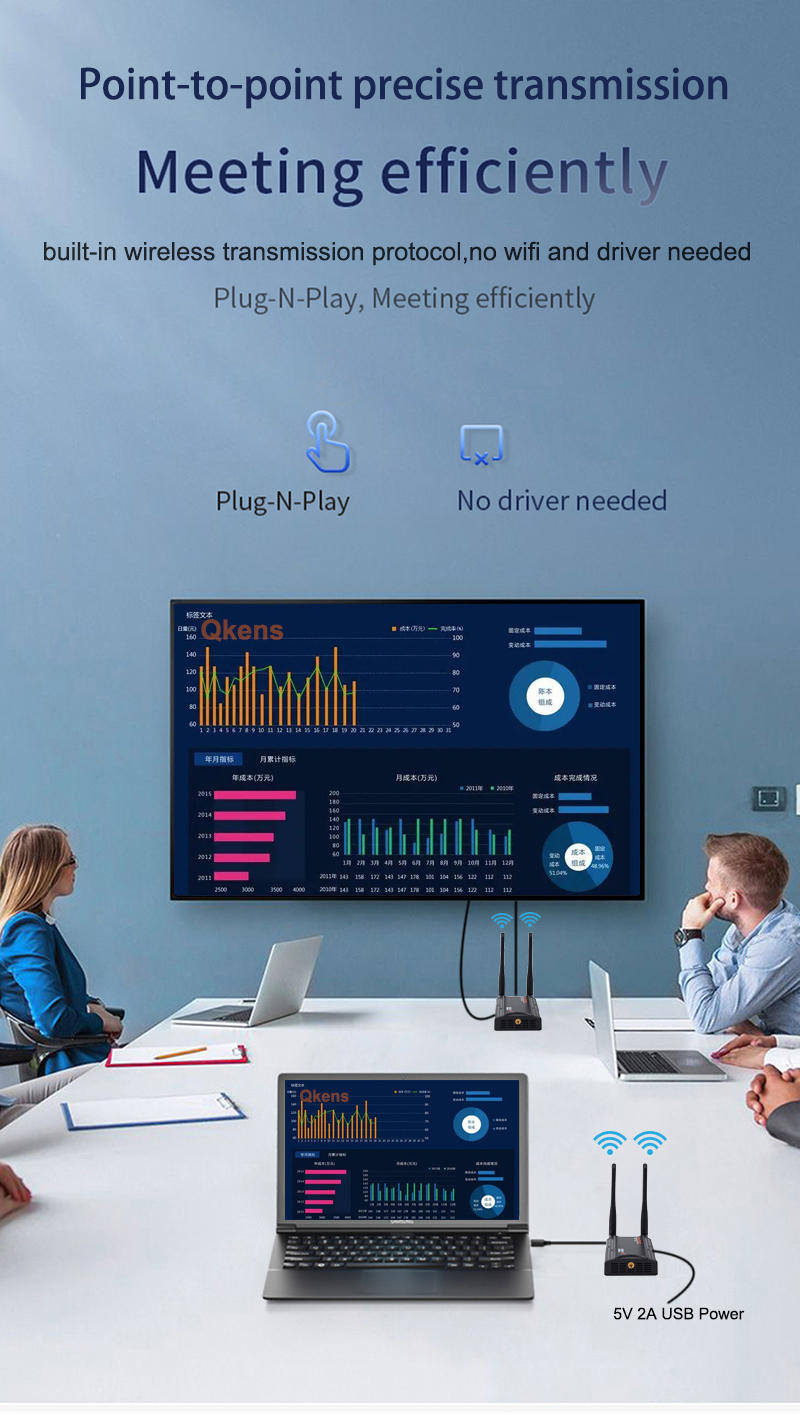 Поддерживает беспроводную передачу Full HD 1080P. Нет необходимости в дополнительной кабельной коробке, сопряжении и работе