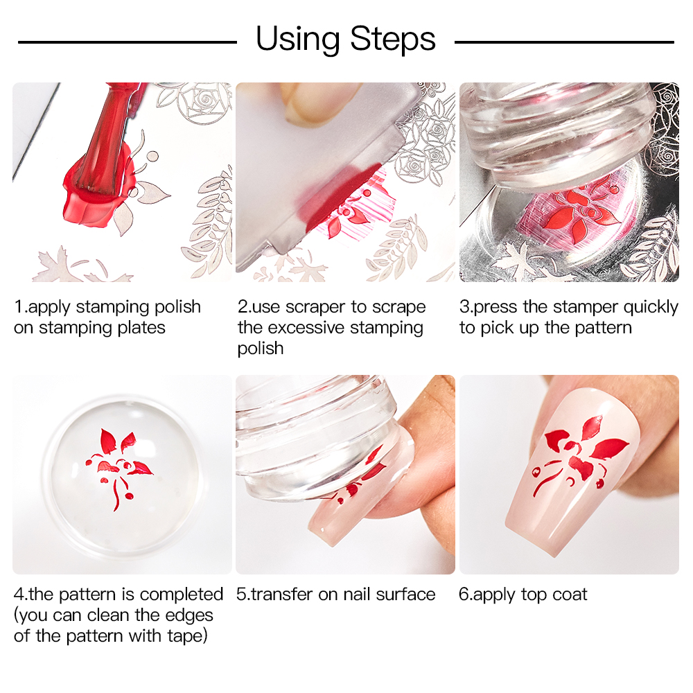 Пластина покрыта тонкой прозрачной защитной пленкой, пожалуйста, Снимите пленку перед использованием чтобы рисунок из лака для ногтей можно было перенести на штамп.