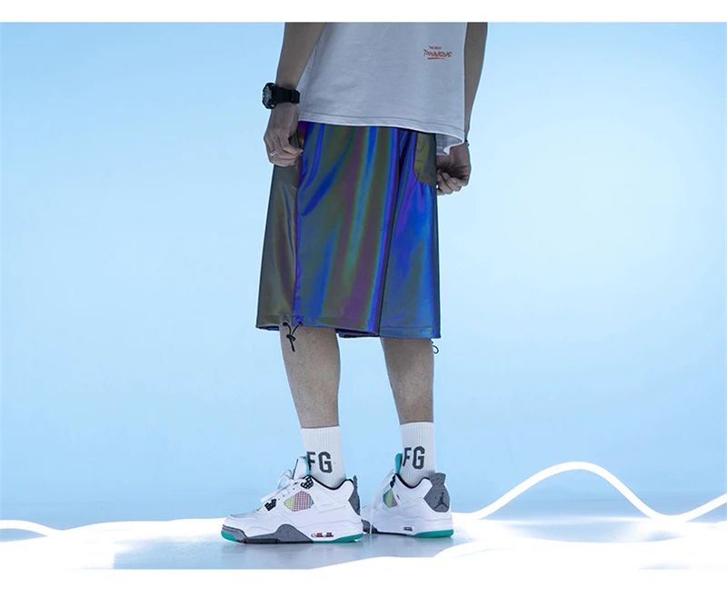 Японские Харадзюку хип хоп большие летние полуштаны с высокой талией мешковатые эстетические светоотражающие мужские кибер Y2K шорты