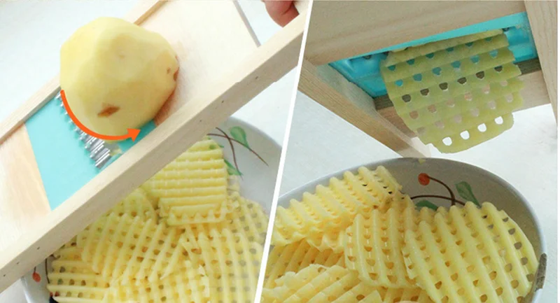 Ломтерезка для картофеля из цельного дерева с сеткой для картофеля, Цветочная овощерезка, гофрированный измельчитель, волновой нож для резки картофеля