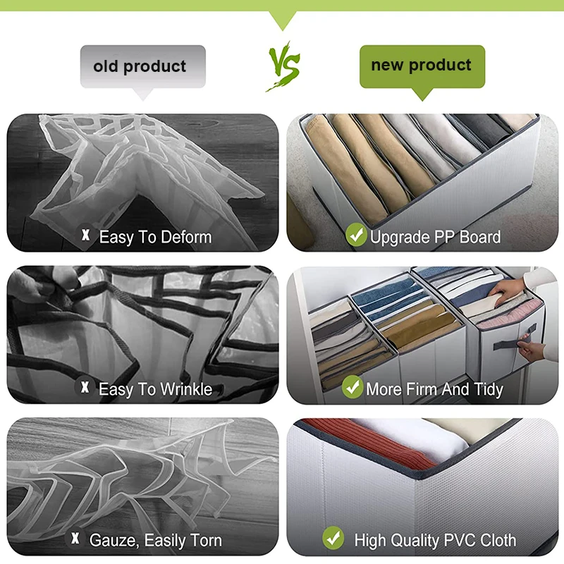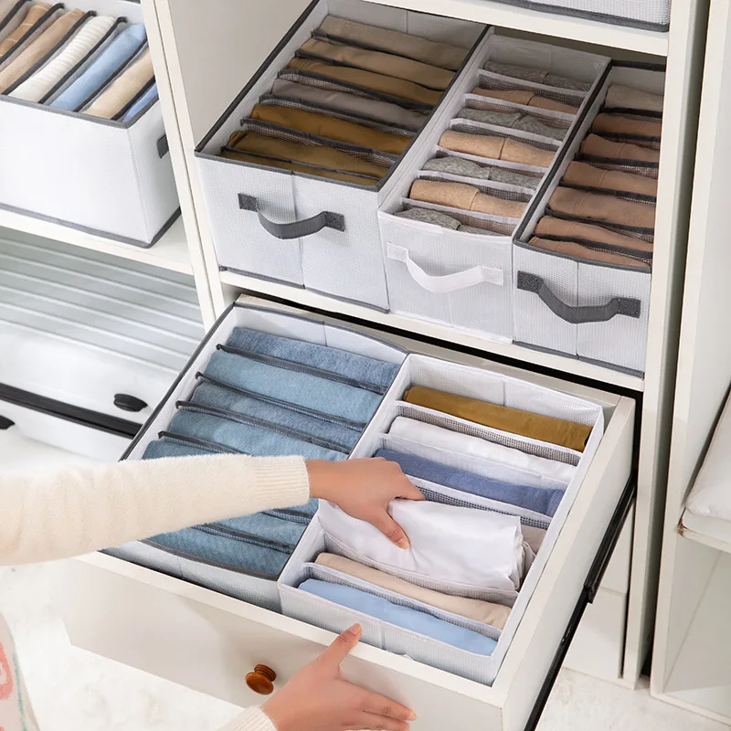 Storage Box Space Saving Folding Washable Separation Grids PP Closet Organizers For pants jeans shirt clothes Drawer Organizers