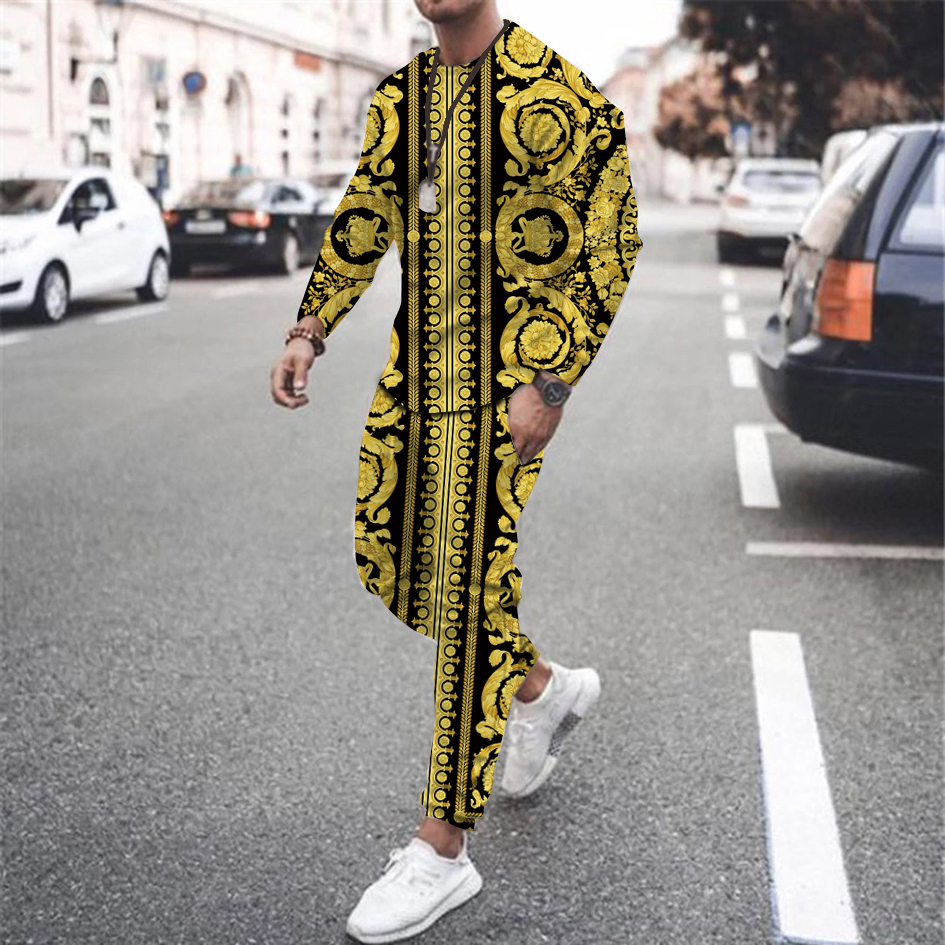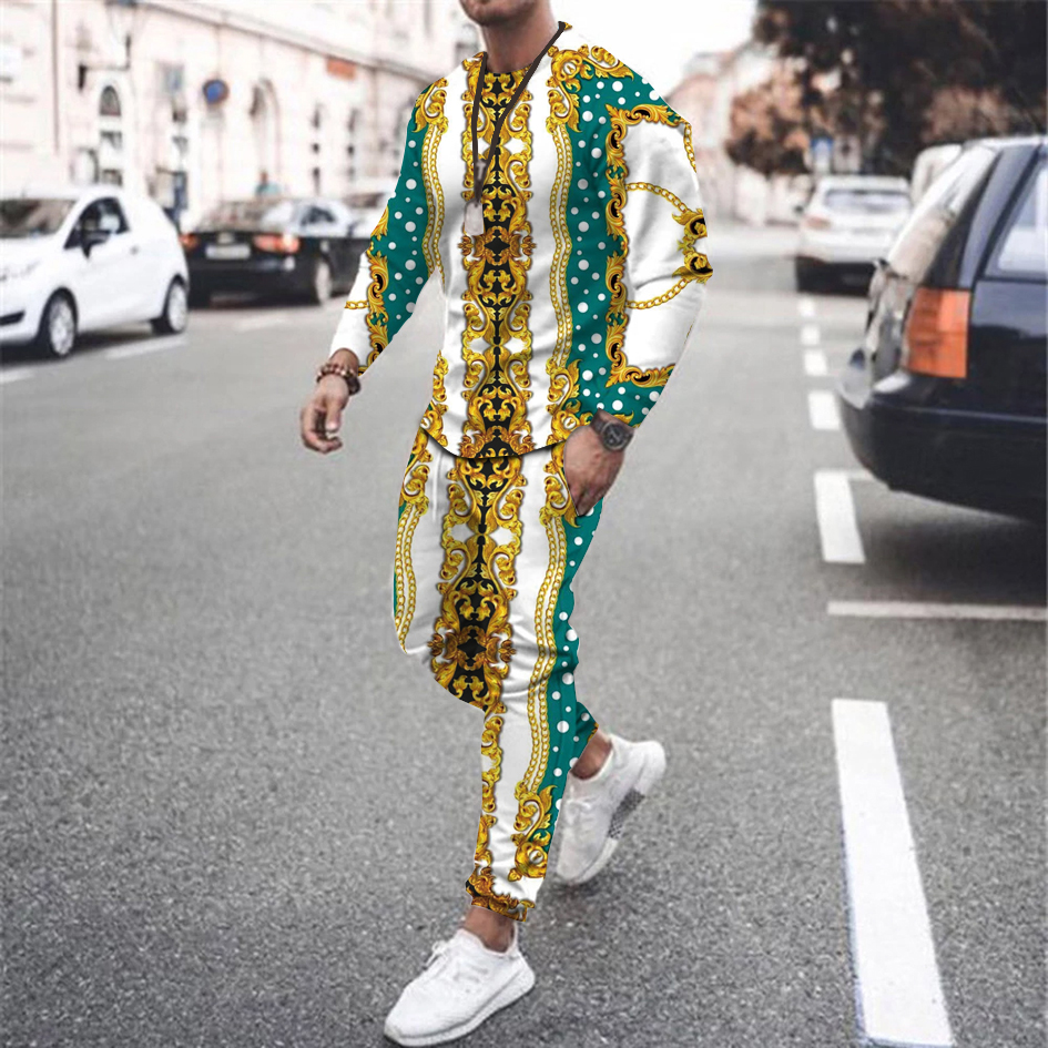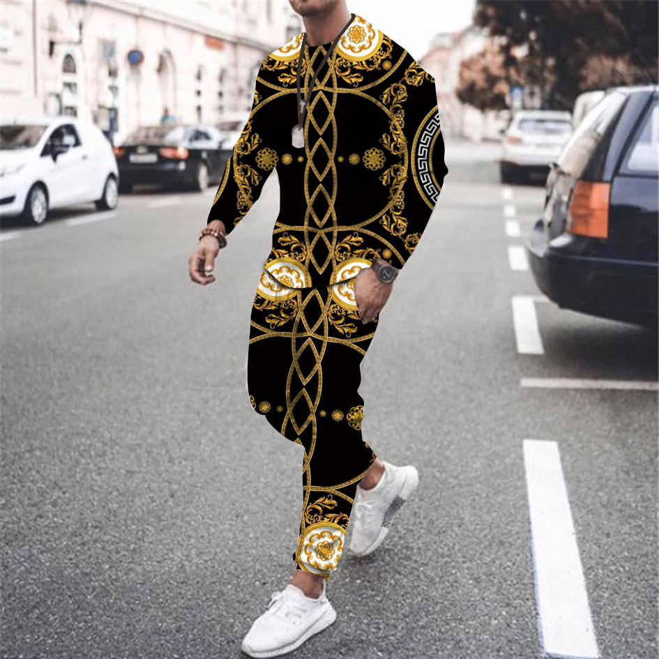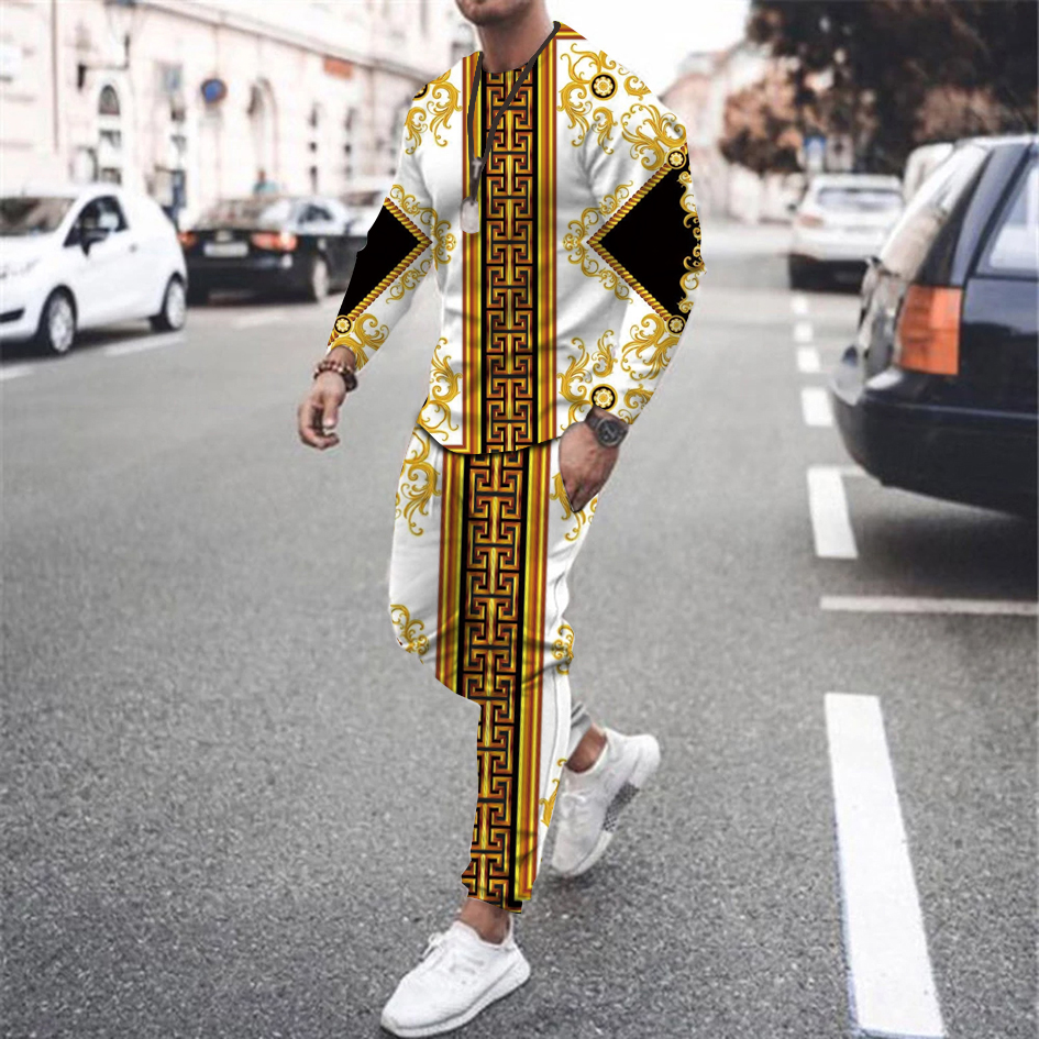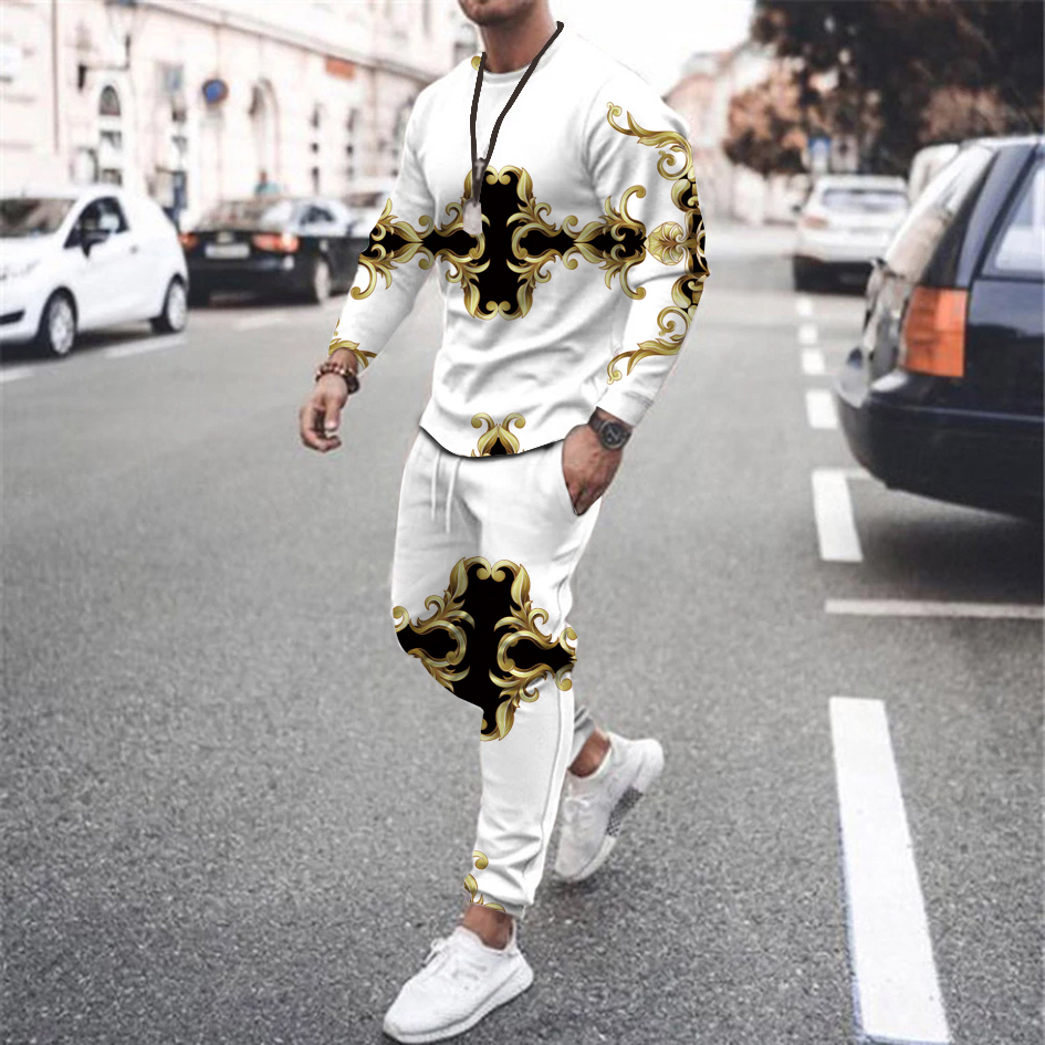 Летняя мужская футболка с длинными рукавами с 3D принтом + длинные штаны (костюм для бега)