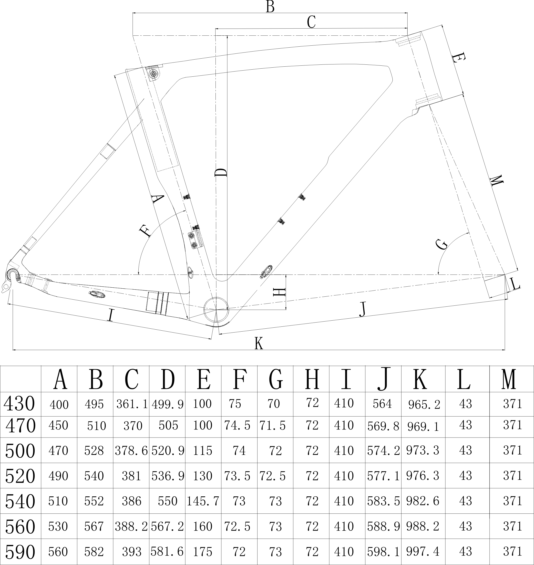 Доступны 7 размеров 43,47,50,52,54,56,59 см; Все внутренние кабели,