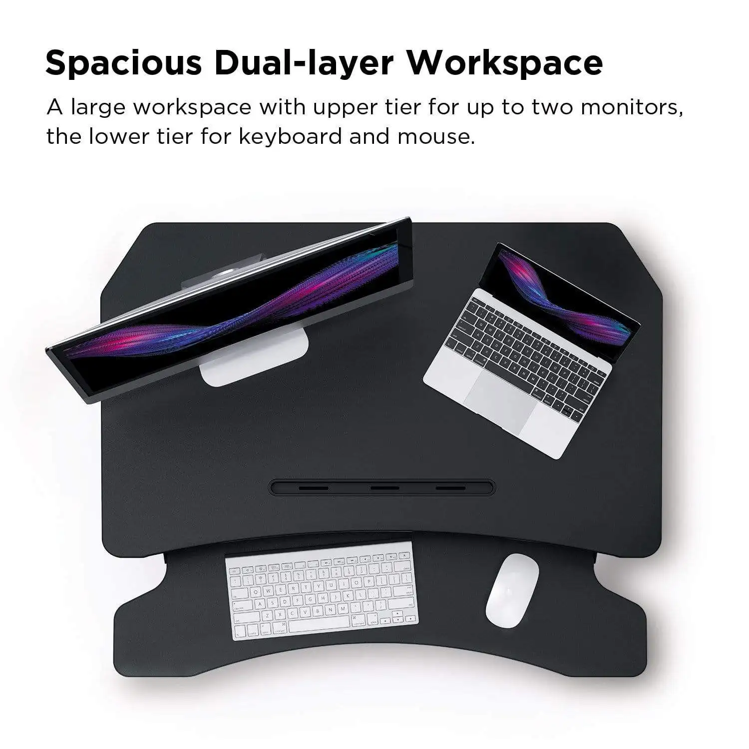 34 "x 20" стол обеспечивает пространство для 2 мониторов/ноутбуков. Нижний уровень 32 "x 12,5" обеспечивает много места для клавиатуры, мыши и других бизнес-потребностей.