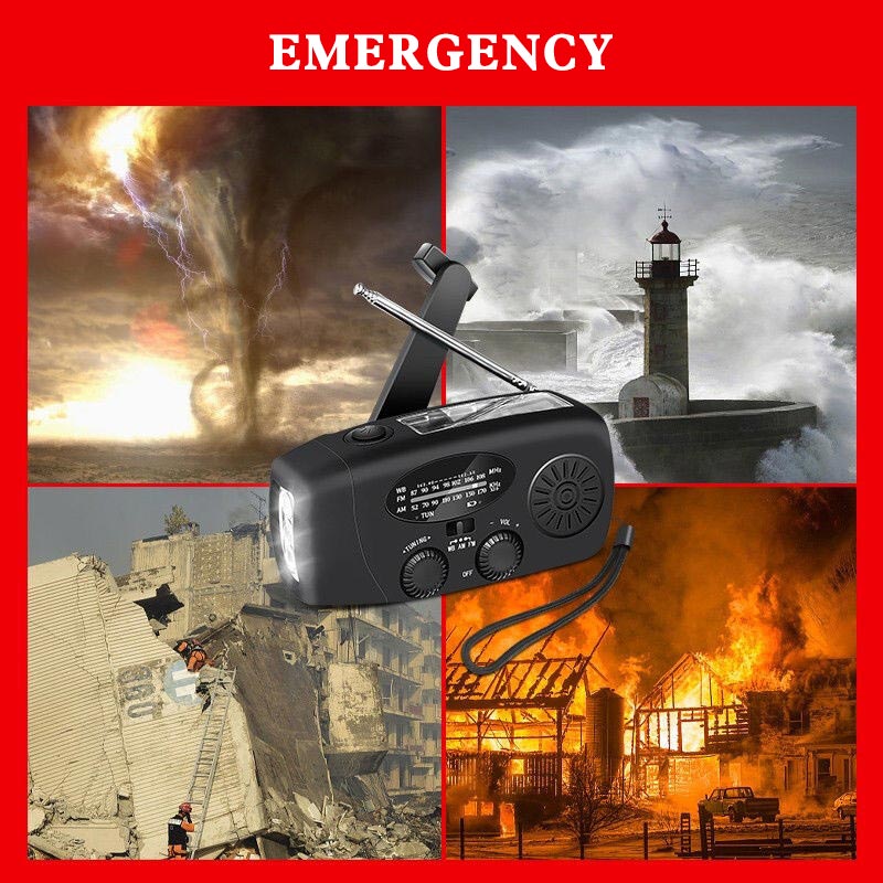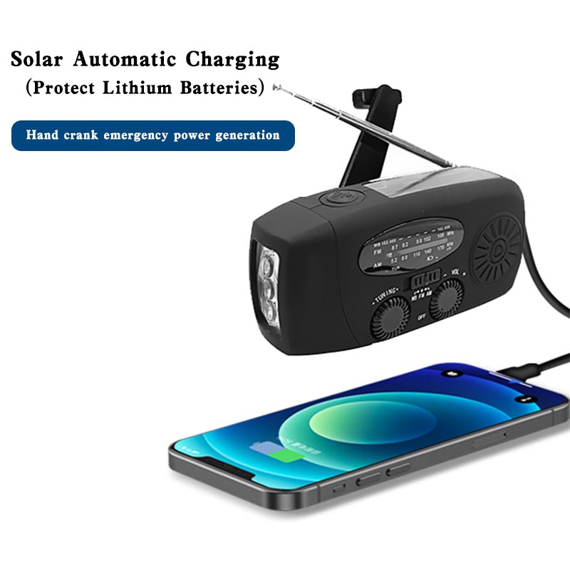 【USB, солнечная и ручная зарядка 】: Нет электричества? Не беспокойтесь. Благодаря 3 способам зарядки перезаряжаемое радио всегда готово к использованию! Мощный аккумулятор емкостью 1000 мА · ч можно заряжать через usb-кабель, панель солнечных батарей или рукоятку.