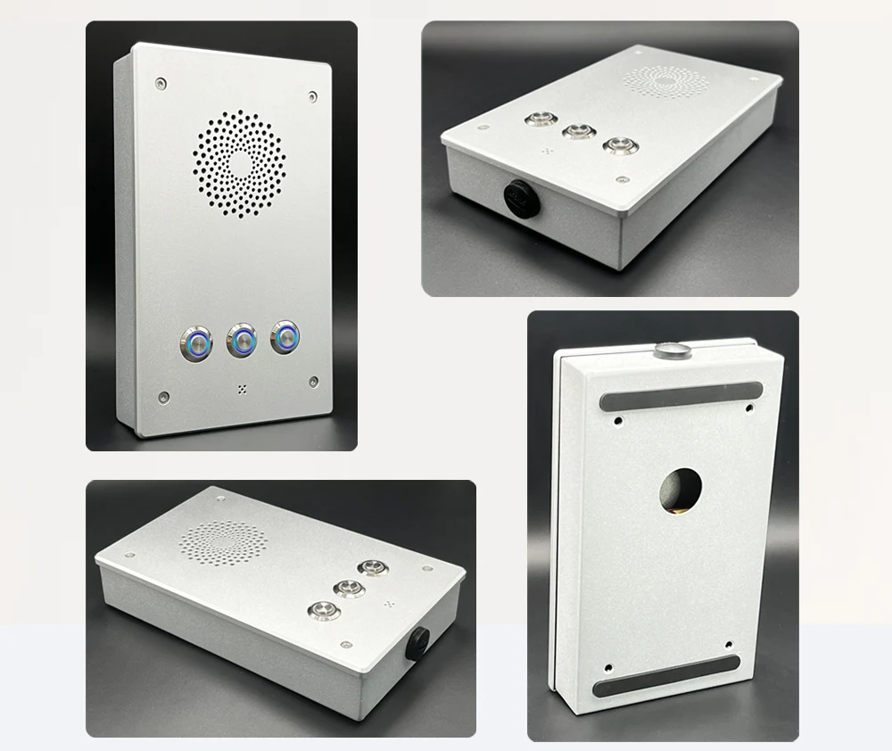 Интерком основан на встроенной ОС Linux и промышленном стандарте RFC3261 (SIP 2,0), имеет высокую совместимость с основными IPPBXs и системами отправки. Это полностью водонепроницаемый дизайн и прочный для плохой наружной ситуации. Этот продукт может быть широко использован в общественных аварийных местах, таких как коммерция, образование, логистика, банковское дело, парковочная станция, медицинское лечение, высокий путь, барьер и так далее.